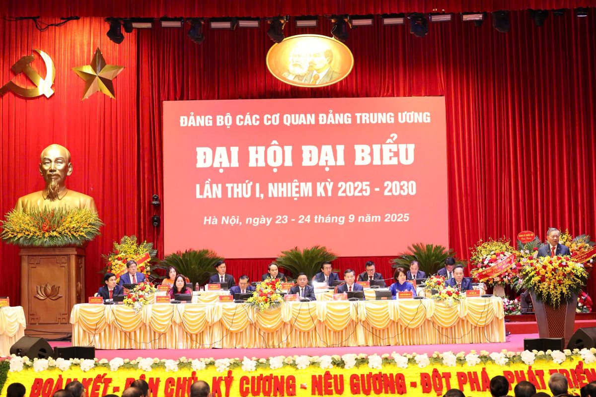 TCCS - Với chủ đề “Tiếp tục đổi mới mạnh mẽ tư duy và hành động, nâng tầm công tác tham mưu chiến lược; xây dựng Đảng bộ trong sạch, vững mạnh tiêu biểu; hoàn thành xuất sắc các mục tiêu, nhiệm vụ đề ra”, Đại hội đại biểu Đảng bộ các cơ quan Đảng Trung ương lần thứ I, nhiệm kỳ 2025 - 2030 được tổ chức trong 2 ngày 23 và 24-9-2025, đã thành công tốt đẹp.