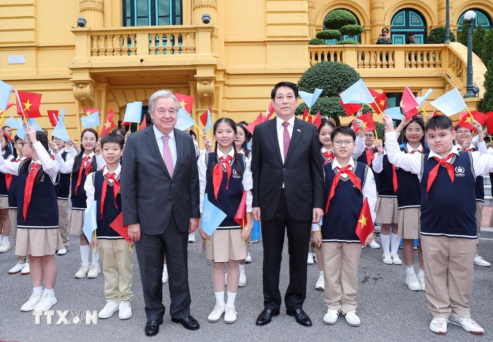 Chủ tịch nước Lương Cường đón và hội đàm với Tổng Thư ký Liên hợp quốc thăm chính thức Việt Nam