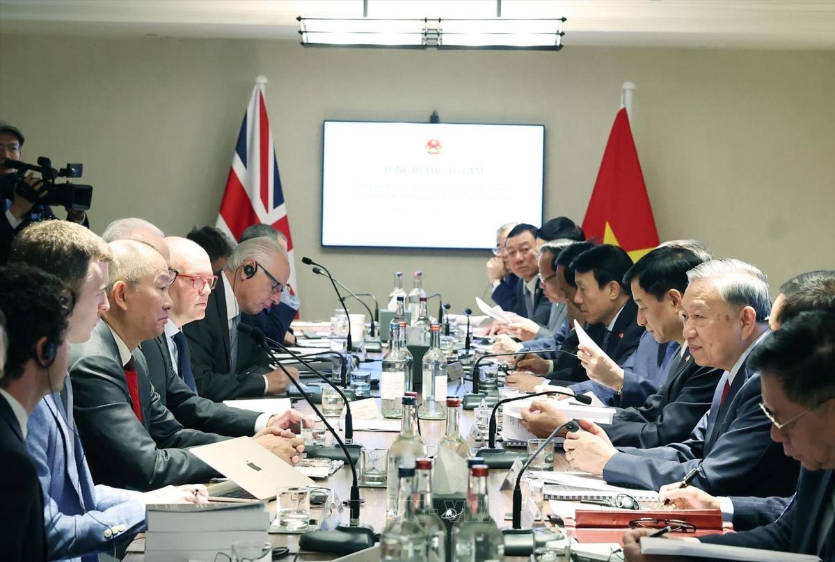 Về tầm nhìn quốc gia đến quan hệ Việt Nam - Vương quốc Anh, Tổng Bí thư cho rằng, đứng trước một bước phát triển mới, Việt Nam coi Anh không chỉ là một đối tác thương mại, một đối tác giáo dục, một đối tác về khoa học - công nghệ, mà là một đối tác chiến lược dài hạn để cùng nhau định hình các chuẩn mực hợp tác trong thế kỷ XXI. Quan hệ Việt Nam - Vương quốc Anh là mối quan hệ hữu nghị, hợp tác và cùng phát triển, Tổng Bí thư khẳng định, đây là một quan hệ đối tác mà cả hai bên đều có lợi ích căn bản trong việc duy trì hòa bình, ổn định, tôn trọng luật pháp quốc tế, bảo đảm tự do hàng hải, bảo vệ chuỗi cung ứng toàn cầu, thúc đẩy thương mại công bằng và bền vững, ứng phó biến đổi khí hậu, phát triển xanh, phát triển bao trùm…