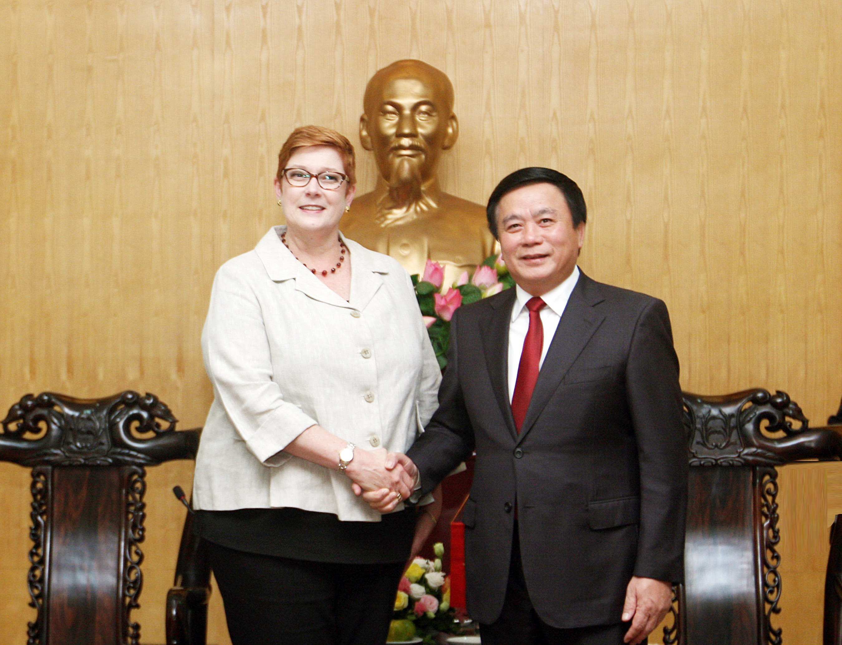 TCCSĐT - Ngày 13-6-2019, nhân chuyến thăm chính thức Việt Nam, Bộ trưởng Ngoại giao Australia, bà Marise Payne đã tới chào Thủ tướng Nguyễn Xuân Phúc; hội kiến Bí thư Trung ương Đảng, Trưởng Ban Kinh tế Trung ương Nguyễn Văn Bình; trao đổi với Bí thư Trung ương Đảng, Giám đốc Học viện Chính trị quốc gia Hồ Chí Minh, Chủ tịch Hội đồng Lý luận Trung ương Nguyễn Xuân Thắng.