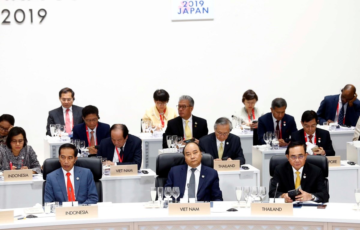 Thủ tướng Nhật Bản Shinzo Abe đã đón Thủ tướng Chính phủ Nguyễn Xuân Phúc và nguyên thủ các nước thành viên Nhóm G20 và các nước khách mời, cùng lãnh đạo đứng đầu của các tổ chức đa phương toàn cầu quan trọng, như Liên hợp quốc, Ngân hàng Thế giới (WB), Quỹ Tiền tệ Quốc tế (IMF), Tổ chức Thương mại thế giới (WTO), Tổ chức Hợp tác và Phát triển Kinh tế (OECD)...