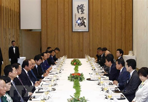 Thủ tướng Nguyễn Xuân Phúc đề nghị Chính phủ Nhật Bản tiếp tục quan tâm, tạo môi trường thuận lợi cho người Việt Nam sinh sống, học tập và làm việc tại Nhật Bản.