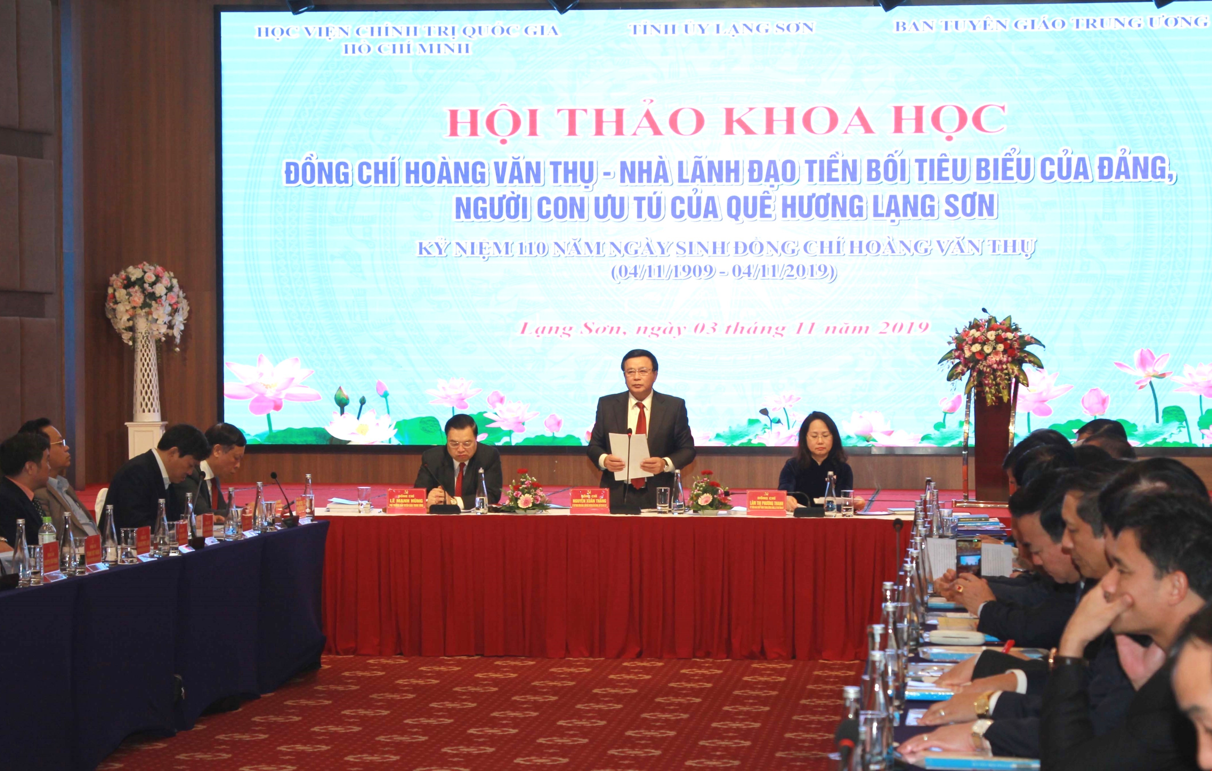 ** Trước đó, ngày 3-11-2019, tại thành phố Lạng Sơn, Học viện Chính trị quốc gia Hồ Chí Minh phối hợp với Tỉnh ủy Lạng Sơn và Ban Tuyên giáo Trung ương tổ chức Hội thảo khoa học: “Đồng chí Hoàng Văn Thụ - Nhà lãnh đạo tiền bối tiêu biểu của Đảng, người con ưu tú của quê hương Lạng Sơn”, nhân kỷ niệm 110 năm Ngày sinh đồng chí Hoàng Văn Thụ (4-11-1909 - 4-11-2019).
