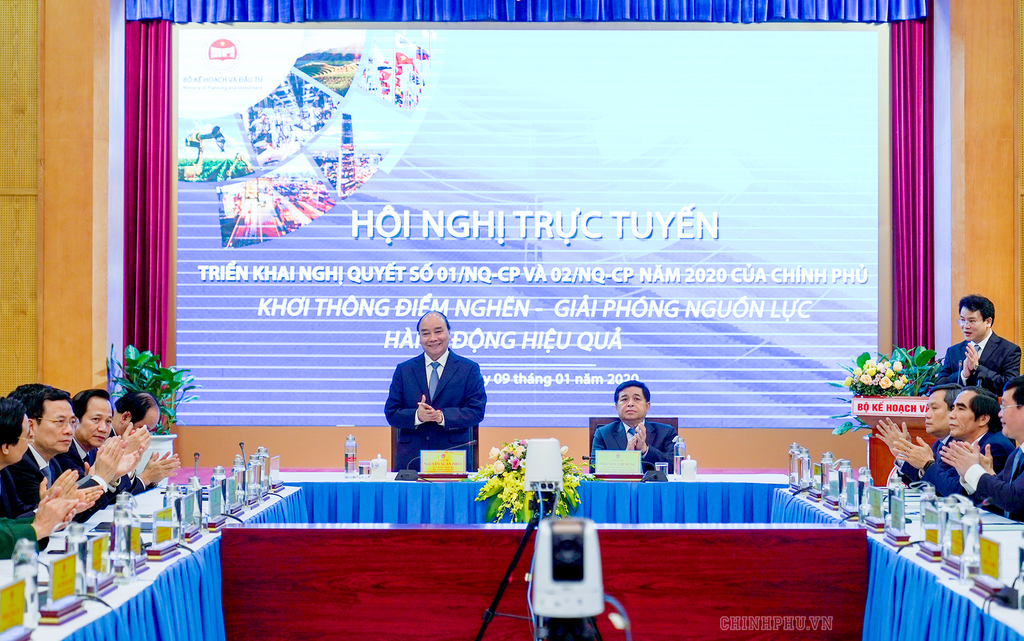 ** Chiều cùng ngày, tại Hội nghị trực tuyến triển khai các Nghị quyết số 01 và 02 năm 2020 của Chính phủ với chủ đề: “Khơi thông điểm nghẽn - Giải phóng nguồn lực - Hành động hiệu quả”, Thủ tướng Nguyễn Xuân Phúc mong muốn Bộ Kế hoạch và Đầu tư phải trực tiếp tham mưu, hiến kế, hoạch định chiến lược, lộ trình để biến khát vọng “Việt Nam hùng cường” thành hiện thực.