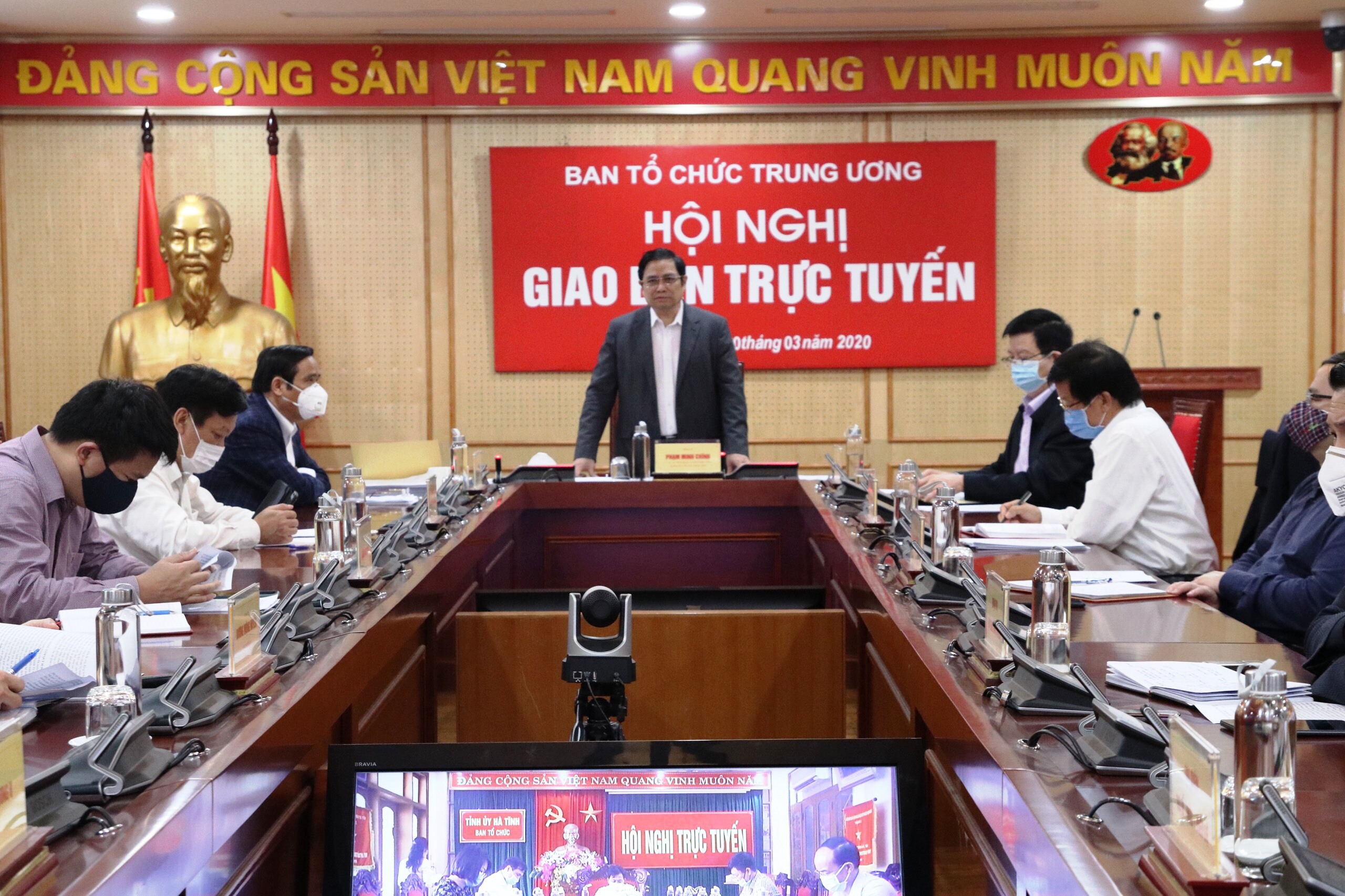 Phát biểu kết luận Hội nghị, đồng chí Phạm Minh Chính, Ủy viên Bộ Chính trị, Bí thư Trung ương Đảng, Trưởng Ban Tổ chức Trung ương đề nghị, trong quý II-2020, toàn ngành tiếp tục thực hiện tốt các biện pháp tăng cường công tác phòng, chống dịch bệnh COVID-19 trong tình hình mới theo phương châm “Nắm chắc tình hình; báo cáo chính xác, kịp thời; phát hiện sớm, cách ly nhanh; điều trị tích cực, chống lây lan”. Chú trọng cơ cấu lại cách quản lý, điều hành của từng cơ quan theo hướng hoàn thành chức năng, nhiệm vụ nhưng giảm tổ chức hội nghị trực tiếp, tăng cường trực tuyến, đẩy mạnh ứng dụng công nghệ thông tin, giảm triệu tập đông người.