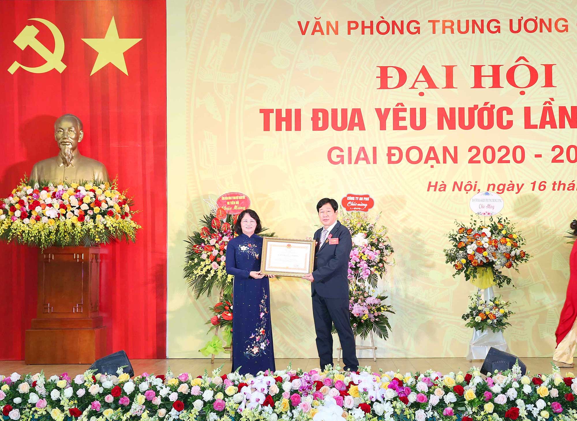 Tại đại hội, Ủy viên Trung ương Đảng, Phó Chủ tịch nước, Phó Chủ tịch thứ nhất Hội đồng thi đua khen thưởng Trung ương Đặng Thị Ngọc Thịnh đã trao Huân chương Lao động hạng Nhì cho đồng chí Trần Đình Hường, hàm Vụ trưởng Vụ Tổng hợp Văn phòng Trung ương Đảng. Lãnh đạo Văn phòng Trung ương Đảng công bố Quyết định công nhận, tôn vinh điển hình tiên tiến Văn phòng Trung ương Đảng cho 32 tập thể và 50 cá nhân đã có thành tích xuất sắc trong phong trào thi đua yêu nước giai đoạn 2015 - 2020; quyết định tặng bằng khen của Chánh Văn phòng Trung ương Đảng cho 25 tập thể và 42 cá nhân vì đã có thành tích xuất sắc trong phong trào thi đua yêu nước giai đoạn 2015 - 2020.