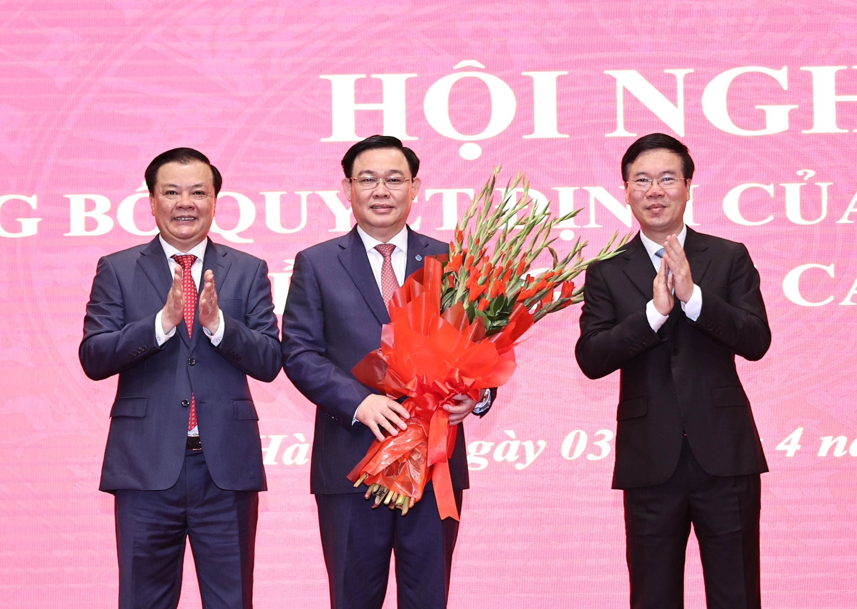 TCCS - Ngày 3-4-2021, Thành ủy Hà Nội tổ chức hội nghị công bố quyết định của Bộ Chính trị về công tác cán bộ. Tới dự hội nghị có các đồng chí Ủy viên Bộ Chính trị: Chủ tịch Quốc hội Vương Đình Huệ; Thường trực Ban Bí thư Võ Văn Thưởng; Bộ trưởng Bộ Tài chính Đinh Tiến Dũng. Tham dự hội nghị còn có các đồng chí lãnh đạo các ban, bộ, ngành Trung ương, thành phố Hà Nội.