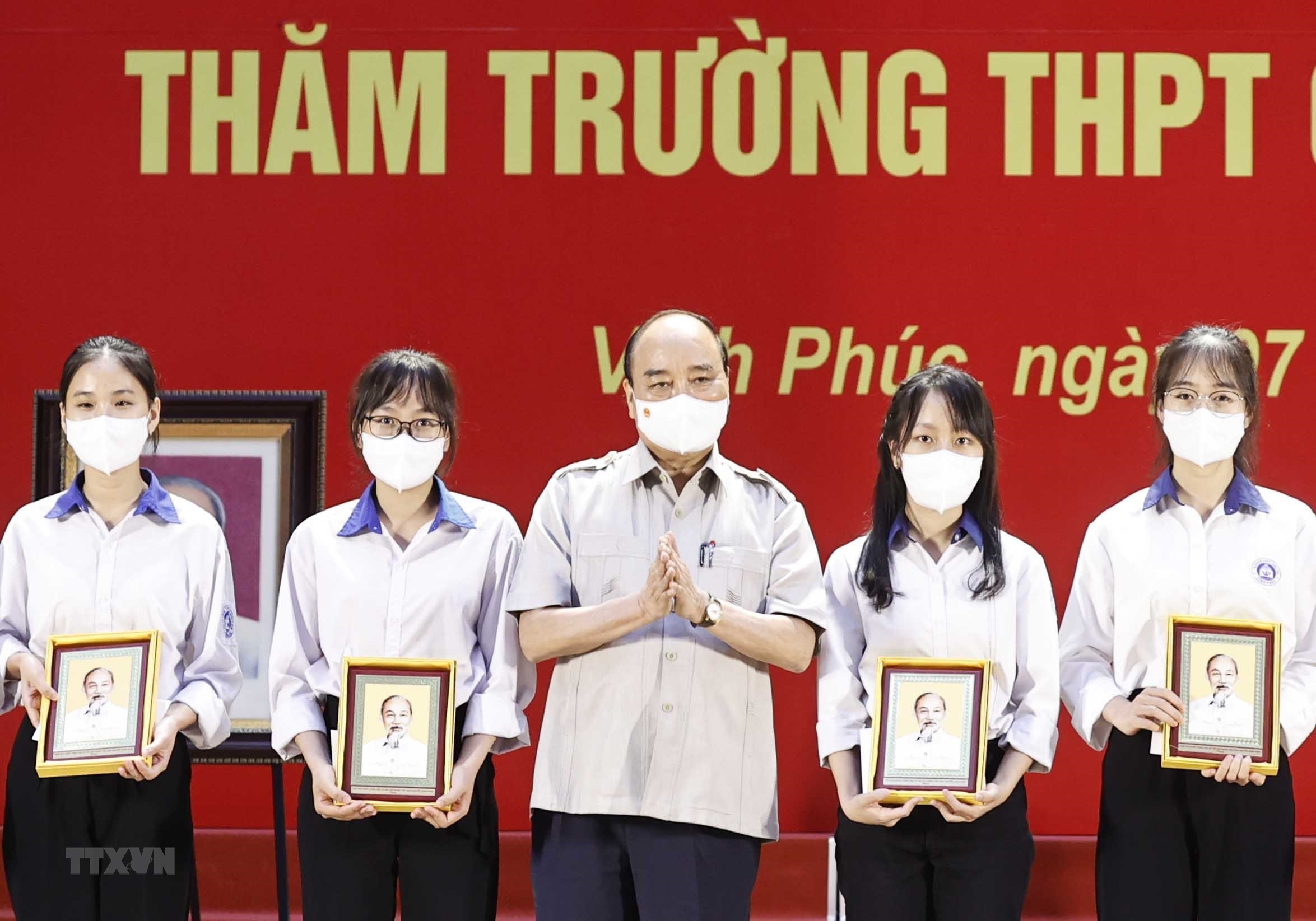 Tại tỉnh Vĩnh Phúc, đến thăm Trường Trung học phổ thông Chuyên Vĩnh Phúc, phát biểu với thầy và trò nhà trường, Chủ tịch nước Nguyễn Xuân Phúc chúc mừng trường có nhiều thành tích xuất sắc trong dạy và học. Chủ tịch nước đánh giá cao thầy và trò nhà trường đã nỗ lực vượt khó khăn trong bối cảnh dịch bệnh để đạt thành tích cao. Vĩnh Phúc là địa phương giàu truyền thống lịch sử văn hóa cách mạng, quê hương của các khoa bảng, luôn nằm trong nhóm đầu cả nước về chất lượng giáo dục toàn diện, trong đó Trường Trung học phổ thông Chuyên Vĩnh Phúc chính là một điểm sáng.