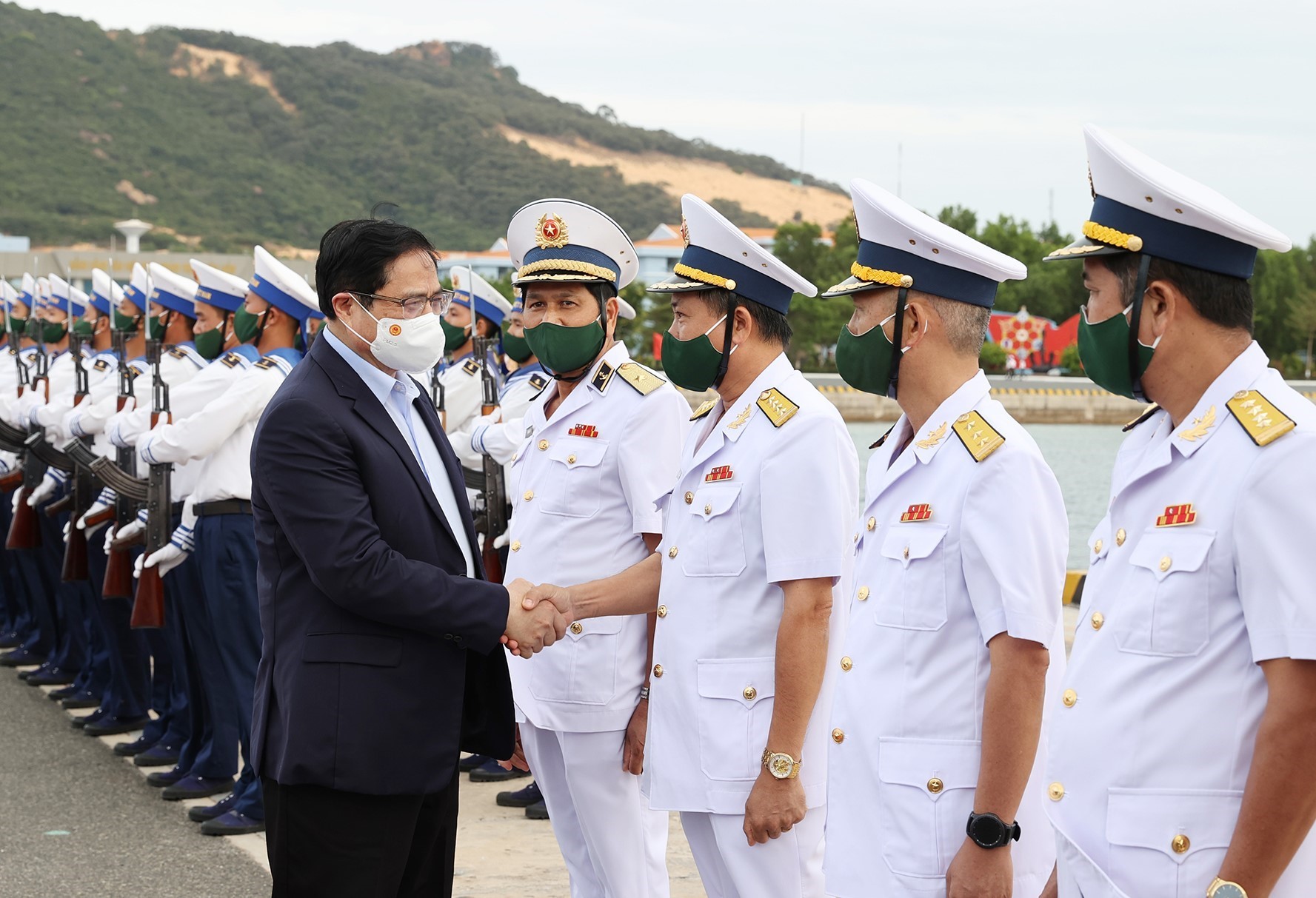 * Cùng ngày, Thủ tướng Chính phủ Phạm Minh Chính đã tới thăm, tặng quà, động viên cán bộ, chiến sĩ của Lữ đoàn tàu ngầm 189 và Lữ đoàn 162, Vùng 4 Hải quân.