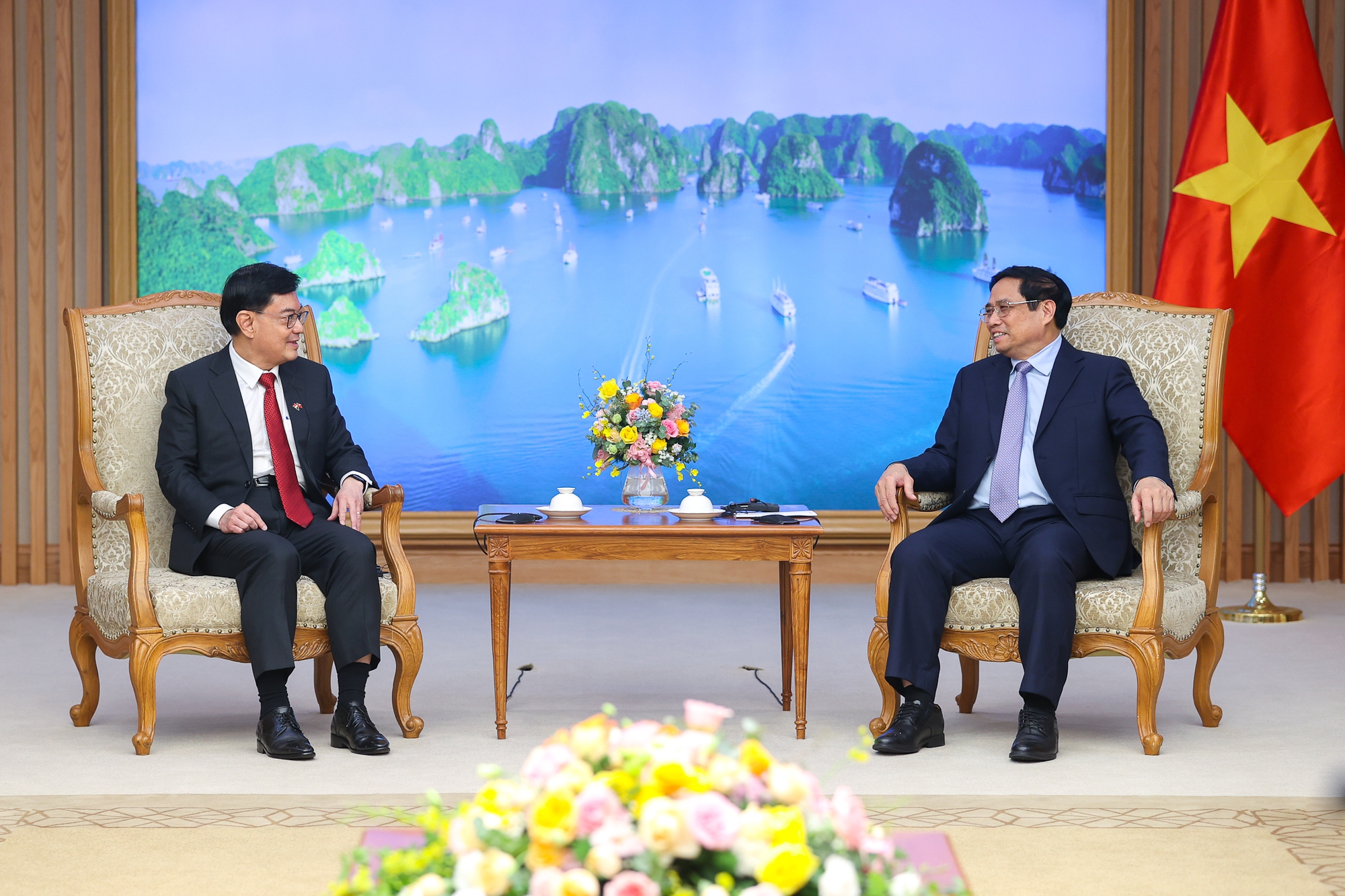 Thủ tướng Chính phủ đề nghị Singapore tăng cường hỗ trợ Việt Nam trong các lĩnh vực quan trọng như kinh tế số, chuyển đổi số, năng lượng xanh, tài chính xanh, công nghệ thông tin, phát triển bền vững, tiếp tục hỗ trợ đào tạo nguồn nhân lực chất lượng cao, cán bộ quản lý cho Việt Nam.
