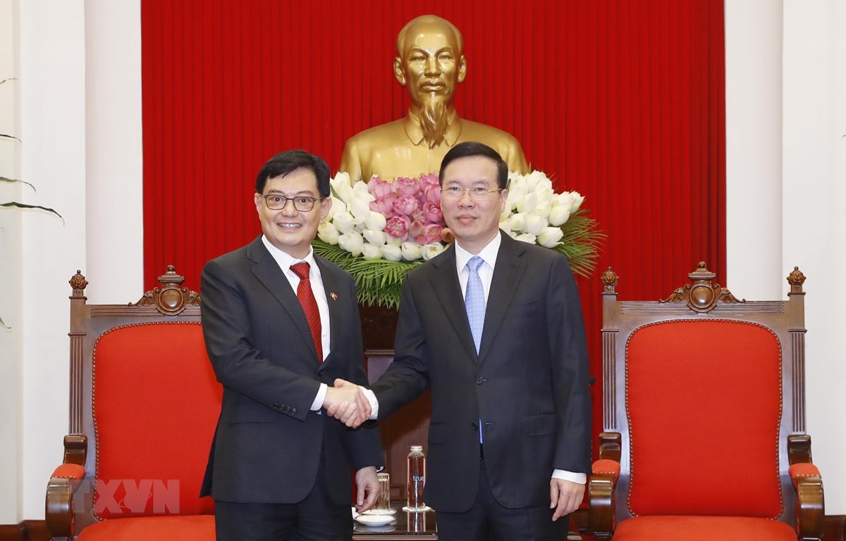 Đồng chí Võ Văn Thưởng nhất trí với đánh giá của Phó Thủ tướng Singapore về sự triển mạnh mẽ, hiệu quả và thực chất của quan hệ đối tác chiến lược Việt Nam - Singapore; khẳng định Đảng và Chính phủ Việt Nam luôn coi trọng và mong muốn thúc đẩy quan hệ đối tác chiến lược với Singapore; đề nghị một số phương hướng nhằm thúc đẩy hợp tác và tăng cường quan hệ song phương trong thời gian tới. Hai bên cần duy trì trao đổi, tiếp xúc cấp cao và các cấp trên tất cả các kênh Đảng, Nhà nước, Chính phủ, Quốc hội và các tổ chức nhân dân; phát huy tiềm năng và các cơ chế hiện có, mở rộng hợp tác trong các lĩnh vực bổ sung cho nhau, đẩy mạnh hợp tác trong các lĩnh vực mới như kinh tế số, chuyển đổi số, kinh tế xanh, phát triển bền vững.