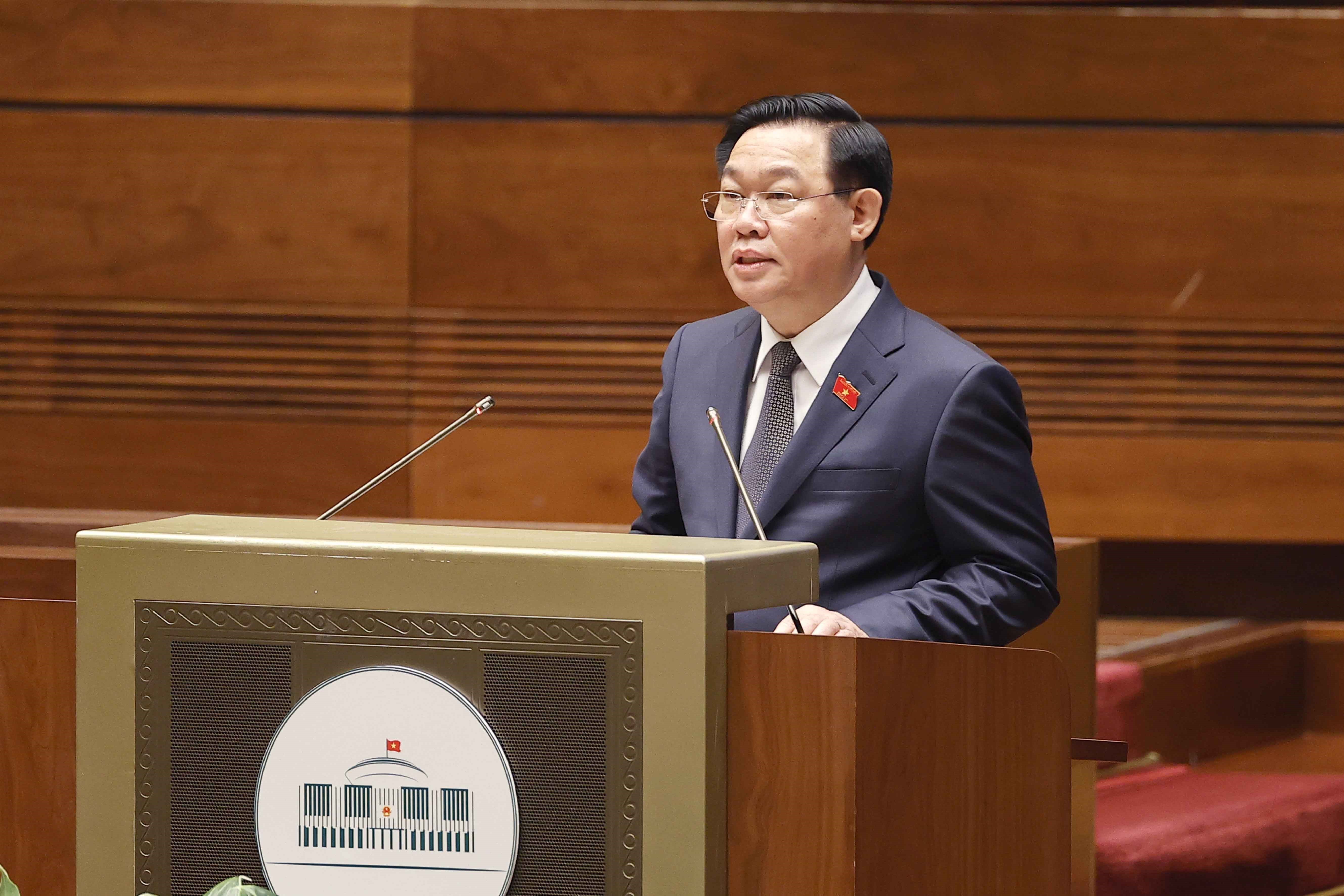 Ủy viên Bộ Chính trị, Chủ tịch Quốc hội Vương Đình Huệ phát biểu bế mạc Kỳ họp thứ 4, Quốc hội khóa XV_Ảnh: TTXVN