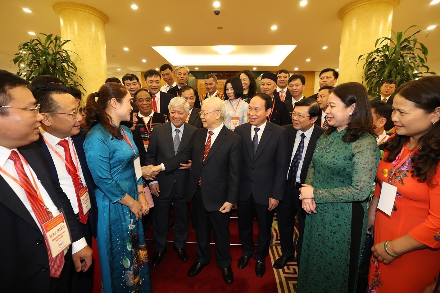Sau khi nghe các ý kiến phát biểu, thay mặt lãnh đạo Đảng và Nhà nước, Tổng Bí thư Nguyễn Phú Trọng ghi nhận, đánh giá cao, nhiệt liệt biểu dương những nỗ lực, tâm huyết, trách nhiệm, tận tuỵ, hoạt động bền bỉ, sáng tạo, đoàn kết, gắn bó với cộng đồng, với người dân ở cơ sở. Các đồng chí thật sự là những người có uy tín cao, là hạt nhân quan trọng, tích cực ở cơ sở, đã có những đóng góp quan trọng vào việc xây dựng, củng cố và phát huy sức mạnh khối đại đoàn kết toàn dân tộc trong sự nghiệp xây dựng và bảo vệ Tổ quốc.
