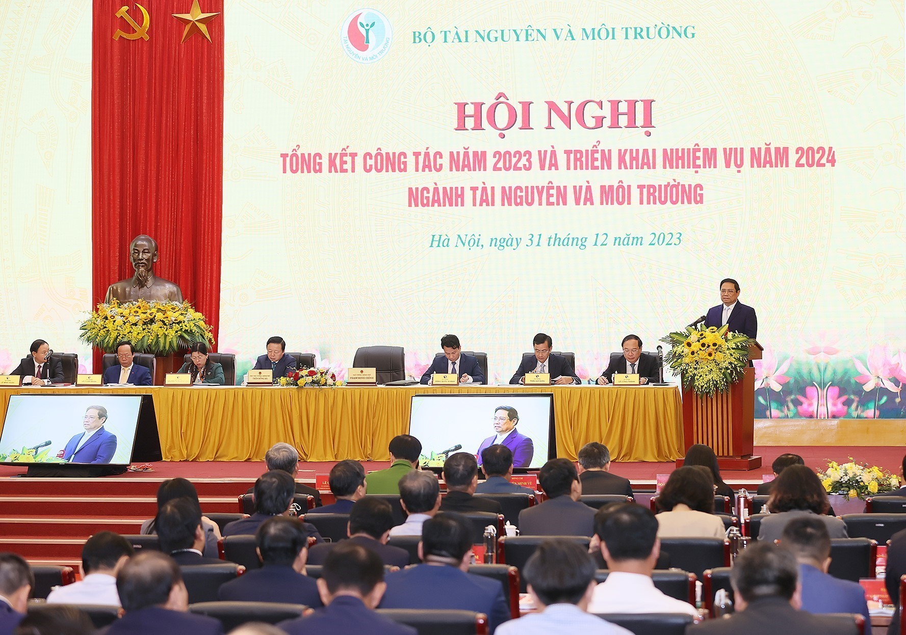 Điểm lại những thành tựu của đất nước trong năm 2023, Thủ tướng Chính phủ nhấn mạnh, trong kết quả chung của cả nước có sự đóng góp quan trọng của ngành tài nguyên và môi trường. Với tinh thần, trách nhiệm, ý chí quyết tâm cao, ngành đã khắc phục khó khăn, thách thức, xử lý kịp thời, có hiệu quả các phát sinh, vướng mắc để hoàn thành nhiệm vụ, kế hoạch năm 2023.