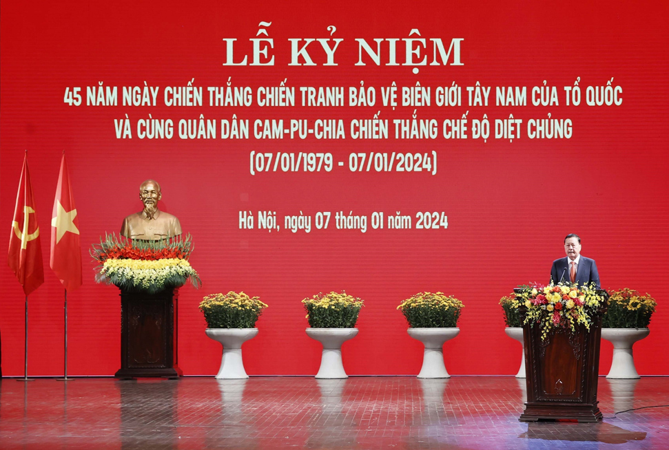 TCCS - Ngày 7-1-2024, tại Hà Nội, Ủy ban Trung ương Mặt trận Tổ quốc Việt Nam, Liên hiệp các tổ chức hữu nghị Việt Nam và Ủy ban nhân dân thành phố Hà Nội phối hợp tổ chức Lễ kỷ niệm 45 năm Ngày chiến thắng chiến tranh bảo vệ biên giới Tây Nam của Tổ quốc và cùng quân dân Campuchia chiến thắng chế độ diệt chủng (7-1-1979 - 7-1-2024).