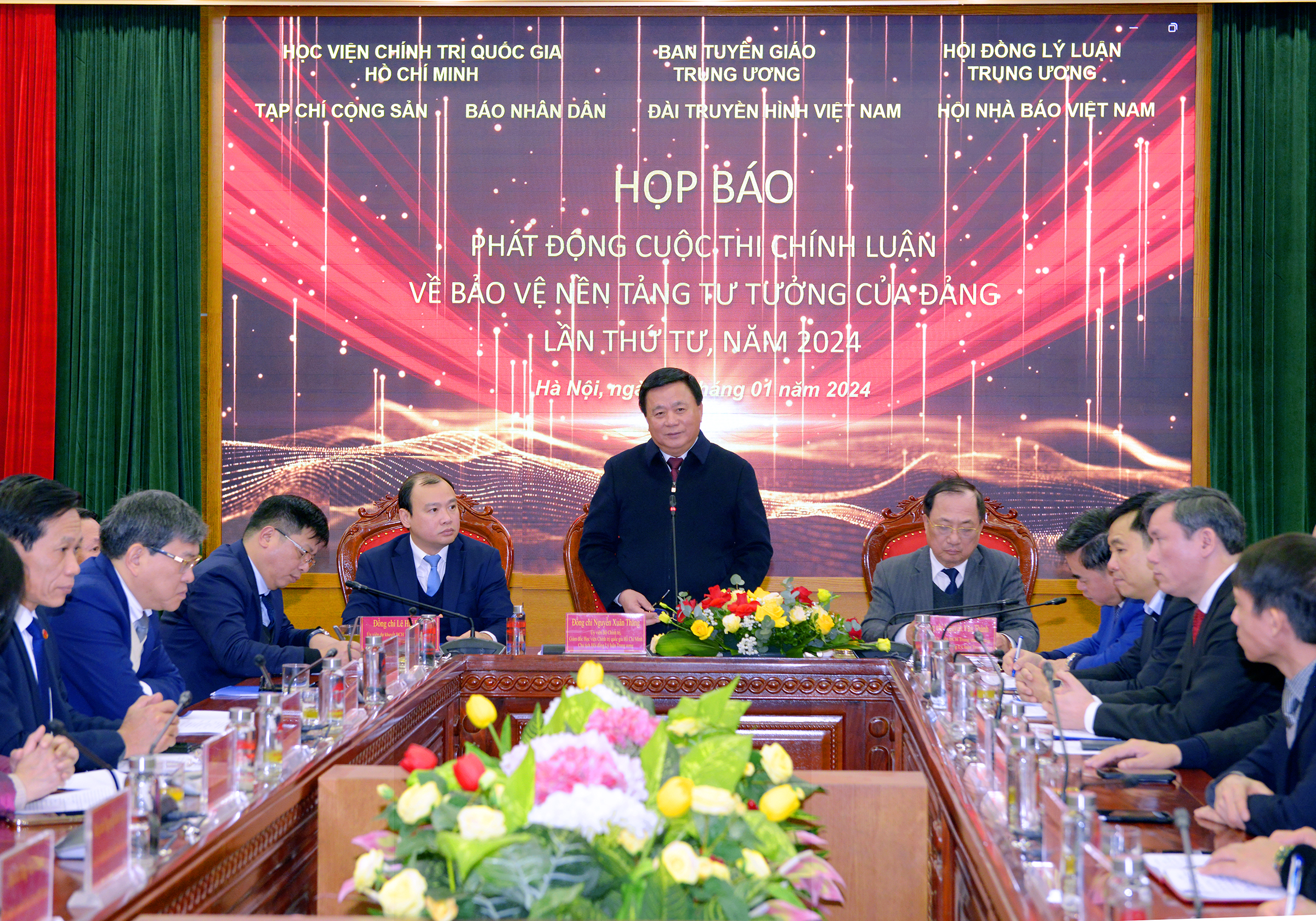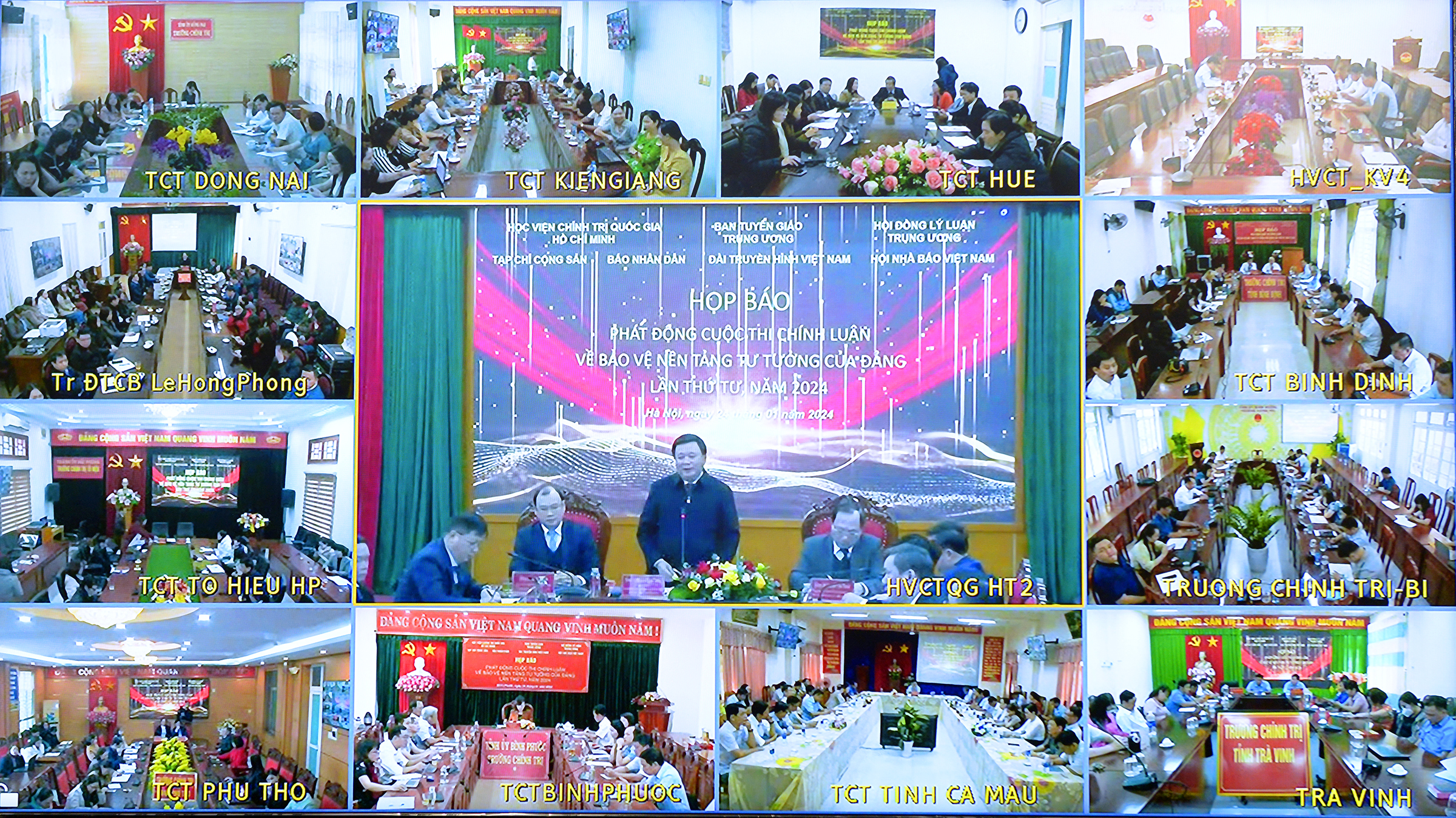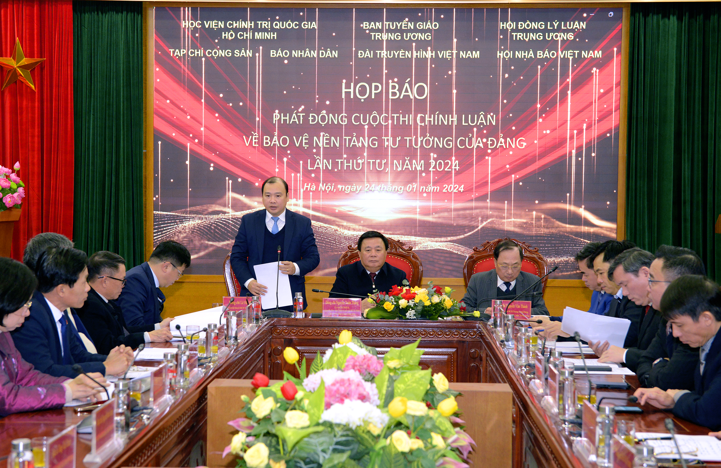 TCCS - Ngày 24-1-2024, tại Hà Nội, Học viện Chính trị quốc gia Hồ Chí Minh phối hợp với Ban Tuyên giáo Trung ương, Hội đồng Lý luận Trung ương, Tạp chí Cộng sản, Báo Nhân dân, Đài Truyền hình Việt Nam và Hội Nhà báo Việt Nam tổ chức họp báo phát động Cuộc thi chính luận về bảo vệ nền tảng tư tưởng của Đảng, đấu tranh phản bác các quan điểm sai trái, thù địch lần thứ tư, năm 2024. Cuộc họp báo được kết nối trực tuyến tới 63 điểm cầu trong cả nước.