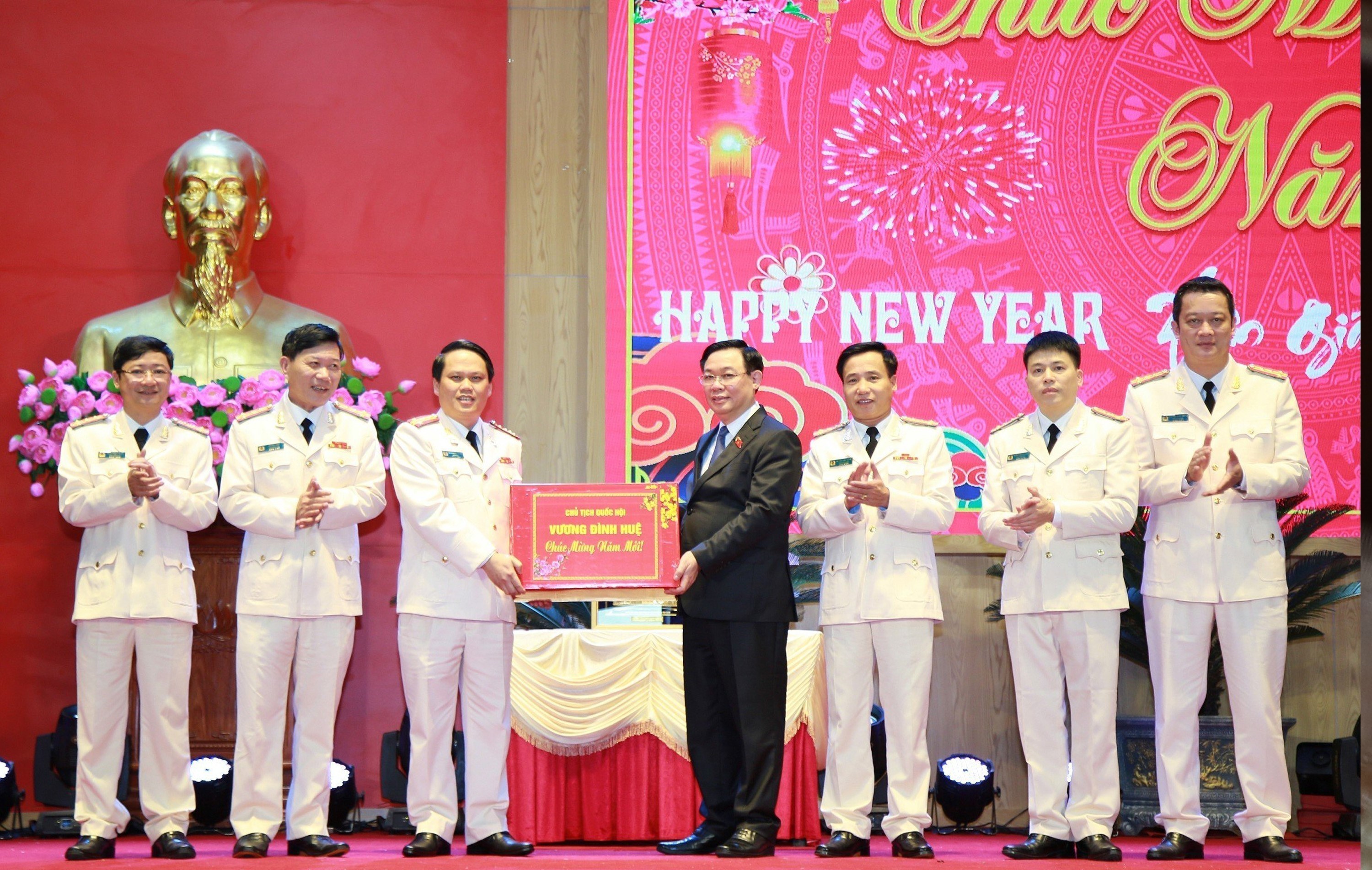Nhân dịp đón tết cổ truyền của dân tộc, Chủ tịch Quốc hội Vương Đình Huệ tặng quà, gửi lời chúc sức khỏe, hạnh phúc và thành công, năm mới thắng lợi mới đến cán bộ, chiến sĩ Công an tỉnh Nghệ An và trao 20 suất quà cho cán bộ, chiến sĩ có hoàn cảnh khó khăn.