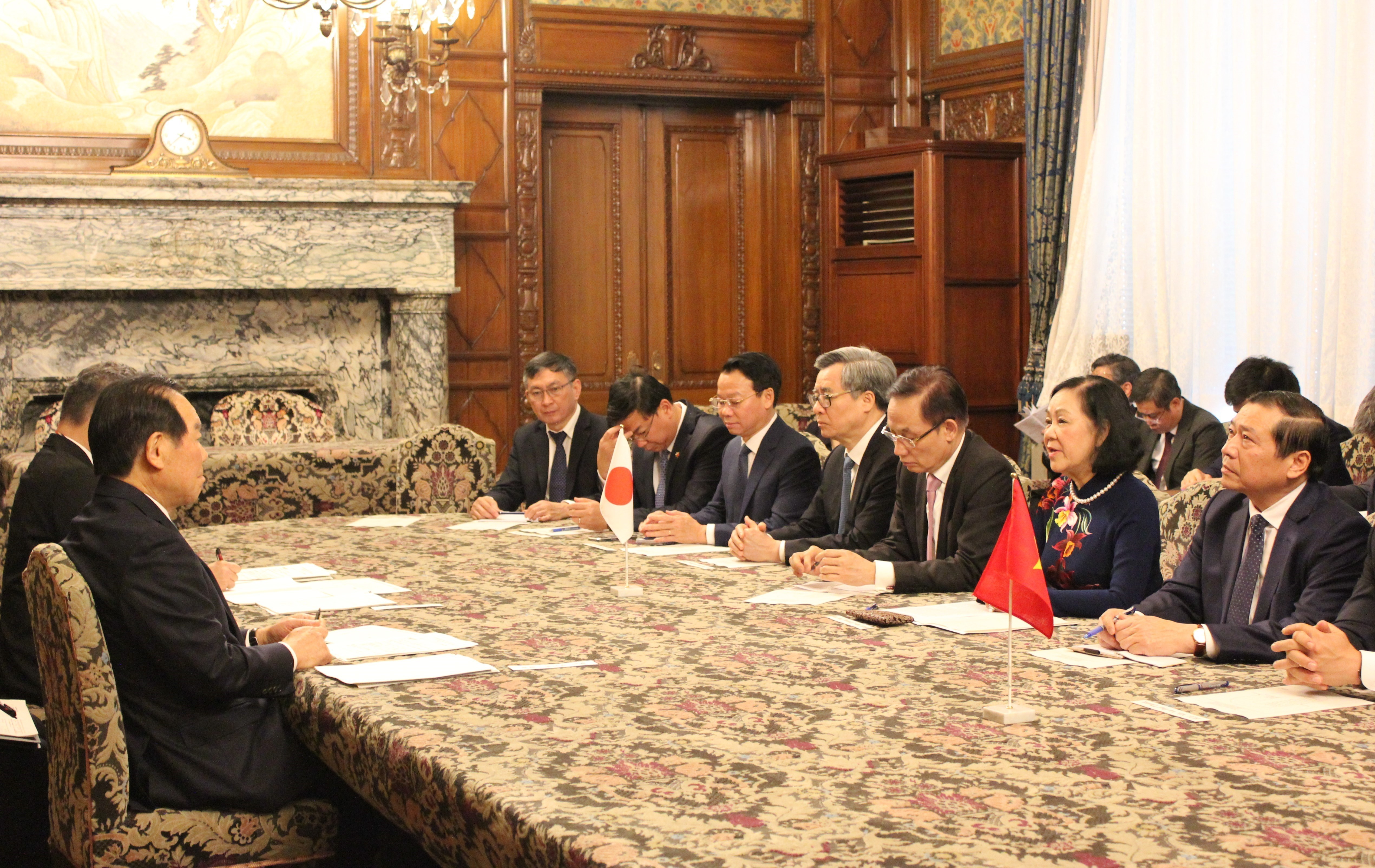 Nhằm làm sâu sắc hơn nữa quan hệ Việt Nam - Nhật Bản trong giai đoạn mới, đồng chí Trương Thị Mai đề nghị hai bên, nhất là Đảng Cộng sản Việt Nam và Đảng Dân chủ Tự do Nhật Bản phát huy vai trò của hai đảng cầm quyền trong việc thúc đẩy cụ thể hóa nhận thức chung cấp cao và các nội dung quan trọng tại “Tuyên bố chung về nâng cấp quan hệ song phương Việt Nam - Nhật Bản lên đối tác chiến lược toàn diện vì hòa bình và thịnh vượng tại khu vực châu Á và trên thế giới”; tăng cường quan hệ chính trị thông qua các chuyến thăm, tiếp xúc của lãnh đạo cấp cao hai bên trên các kênh Đảng, Nhà nước, Chính phủ, Quốc hội và đối ngoại nhân dân; thúc đẩy hợp tác kinh tế và trên các lĩnh vực, giao lưu địa phương không ngừng tiến triển thực chất, phù hợp với định hướng phát triển bền vững của hai nước.