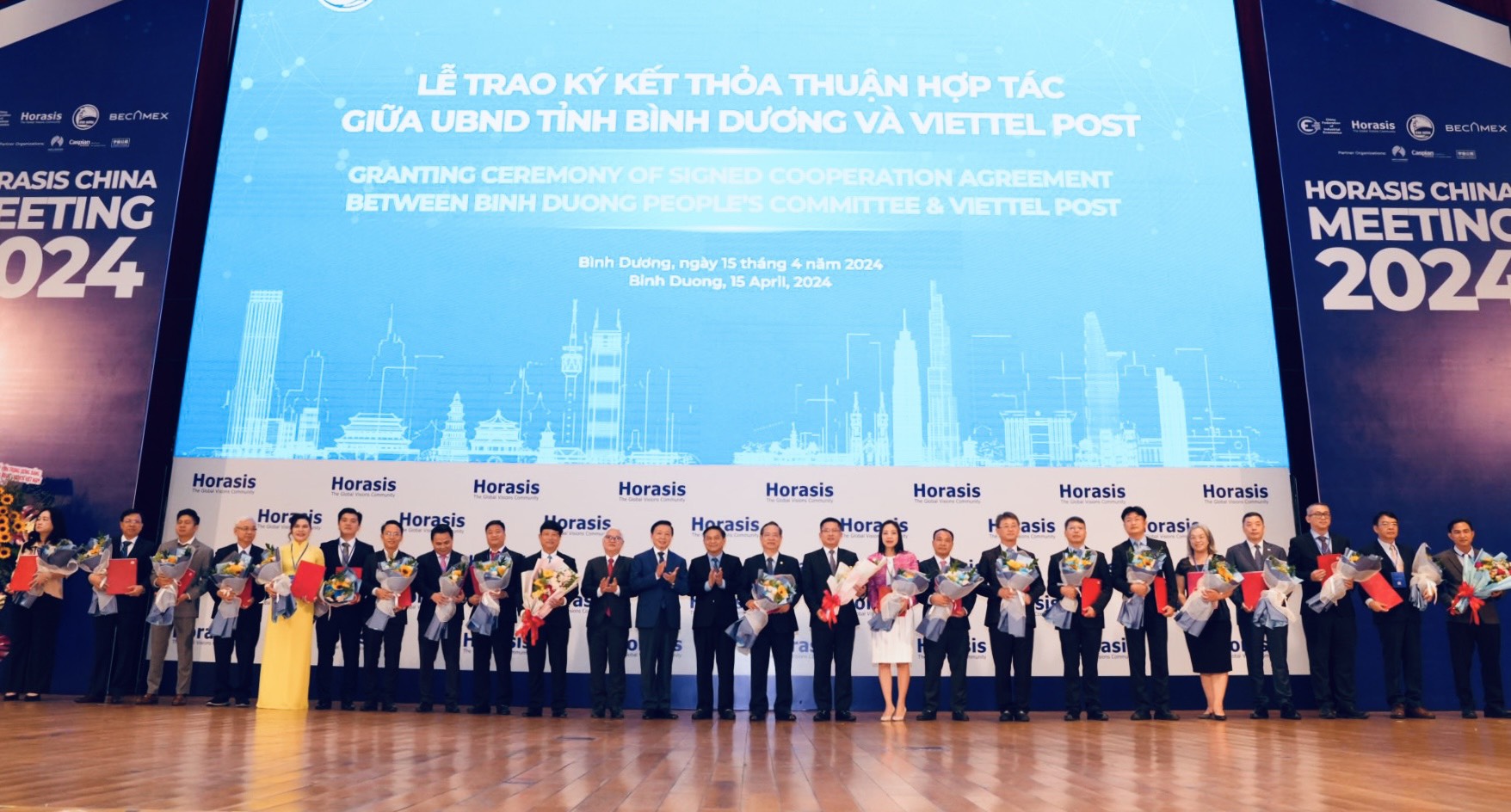Nhân sự kiện Diễn đàn hợp tác kinh tế Horasis Trung Quốc 2024, Ủy ban nhân dân tỉnh Bình Dương đã trao 9 quyết định chấp thuận chủ trương đầu tư và trao 8 giấy chứng nhận đăng ký đầu tư cho một số dự án tiêu biểu trên địa bàn tỉnh; trao thỏa thuận hợp tác đầu tư giữa Ủy ban nhân dân tỉnh Bình Dương và Viettel Post; trao nghị quyết chủ trương đầu tư dự án vành đai 4; dự án đường cao tốc Thành phố Hồ Chí Minh - Thủ Dầu Một - Chơn Thành. Cũng trong dịp này, Tổng Công ty Becamex IDC và Tập đoàn Sunwah đã ký kết Biên bản ghi nhớ về trao đổi hợp tác trong các lĩnh vực, đặc biệt tập trung vào lĩnh vực đổi mới sáng tạo, chuyển đổi số, phát triển công nghệ, phát triển bền vững, hướng đến Net Zero./.