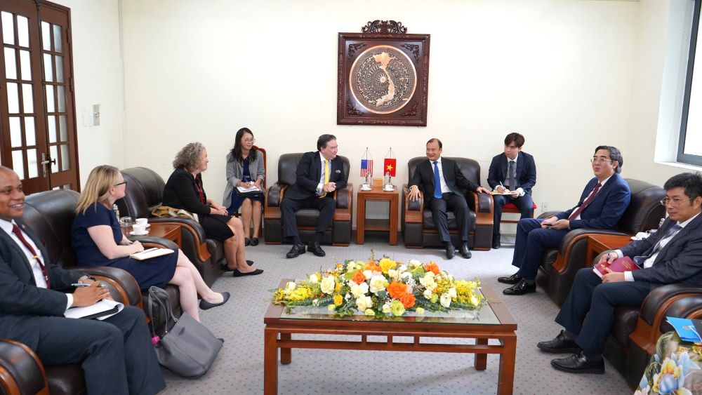 Đồng chí Lê Hải Bình cũng đánh giá cao những đóng góp quan trọng của ngài Đại sứ Marc Knapper trong việc tăng cường mối quan hệ sâu sắc giữa Việt Nam - Hoa Kỳ và mong muốn ngài Đại sứ tiếp tục quan tâm, thúc đẩy mối quan hệ giữa hai nước.