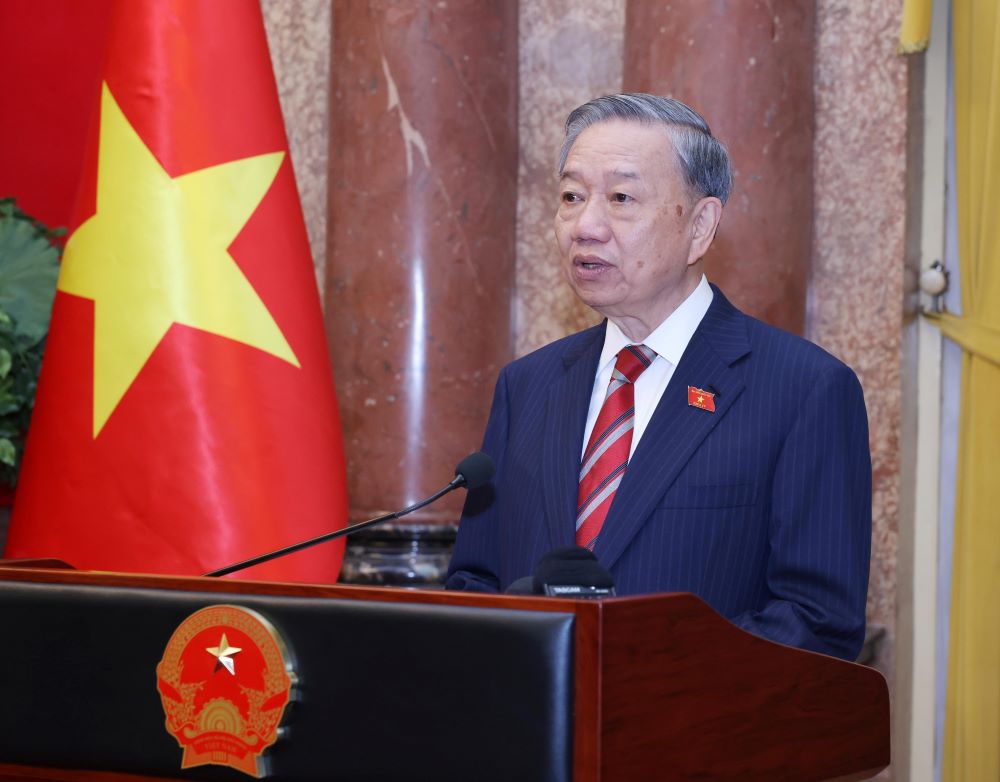 * Cùng ngày, tại Phủ Chủ tịch, Tổng Bí thư, Chủ tịch nước Tô Lâm đã chủ trì Lễ công bố và trao quyết định của Chủ tịch nước bổ nhiệm các phó thủ tướng chính phủ, Bộ trưởng Bộ Tài nguyên và Môi trường, Bộ trưởng Bộ Tư pháp nhiệm kỳ 2021 - 2026.