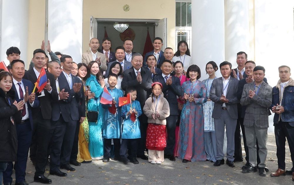 Về cộng đồng người Việt Nam tại Mông Cổ, Tổng Bí thư, Chủ tịch nước Tô Lâm nhấn mạnh cộng đồng cần tiếp tục phát huy tinh thần đoàn kết, nỗ lực phấn đấu vươn lên, hội nhập tích cực, tuân thủ pháp luật và đóng góp cho phát triển ở nước sở tại, góp phần phát triển quan hệ Đối tác toàn diện Việt Nam - Mông Cổ. Đại sứ quán Việt Nam tại Mông Cổ phát huy vai trò cầu nối giữa hai nước và giữa các bộ, ngành hai bên, phối hợp triển khai hiệu quả các thỏa thuận của lãnh đạo cấp cao hai nước trong đó có Tuyên bố chung về thiết lập quan hệ Đối tác toàn diện Việt Nam - Mông Cổ; phối hợp thúc đẩy hiệu quả quan hệ, hợp tác giữa hai nước trên tất cả các lĩnh vực... Đại sứ quán Việt Nam tại Mông Cổ tiếp tục làm tốt công tác cộng đồng và bảo hộ công dân; làm tốt công tác tuyên truyền, vận động cộng đồng người Việt Nam tại Mông Cổ tiếp tục tuân thủ pháp luật của sở tại, không để xảy ra các vụ việc vi phạm pháp luật, ảnh hưởng đến hình ảnh đất nước, con người Việt Nam trong mắt bạn bè Mông Cổ, tránh gây ảnh hưởng không tốt đến quan hệ hai nước đang phát triển rất tốt đẹp; đùm bọc, giúp đỡ, cùng hỗ trợ nhau làm ăn, học tập thuận lợi...