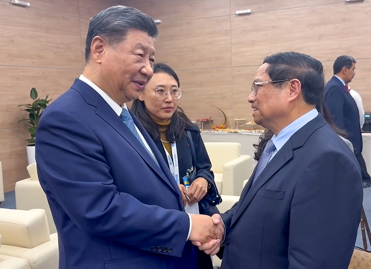 TCCS - Trong khuôn khổ tham dự Hội nghị các nhà lãnh đạo nhóm BRICS mở rộng năm 2024 từ ngày 23 đến 24-10-2024, Ủy viên Bộ Chính trị, Thủ tướng Chính phủ Phạm Minh Chính đã có cuộc hội đàm với Tổng thống Liên bang Nga Vladimir Putin; hội kiến Tổng Bí thư, Chủ tịch nước Lào Thongloun Sisoulith và có cuộc gặp ngắn với Tổng Bí thư, Chủ tịch Trung Quốc Tập Cận Bình và lãnh đạo một số nước tham dự hội nghị.