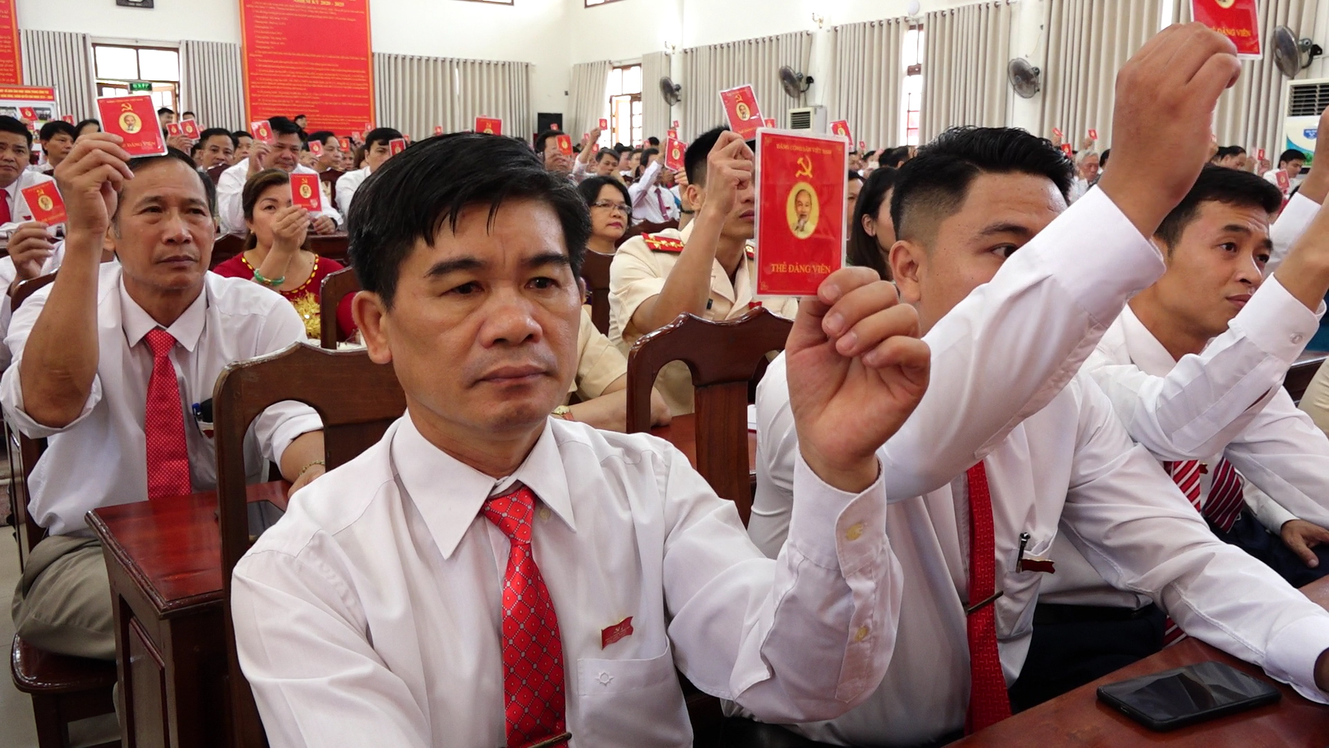 Ngày 12 và 13-3-2020, Đại hội điểm tại Đảng bộ xã Hồng Dương được tổ chức; tổ công tác chỉ đạo đại hội của huyện, lãnh đạo cấp ủy xã về dự và rút kinh nghiệm sau đại hội. Ngày 10-6-2020, Đảng bộ cơ quan Uỷ ban nhân dân huyện là đảng bộ cơ sở cuối cùng của Đảng bộ huyện tổ chức đại hội thành công. 43/43 đơn vị đã tổ chức thành công đại hội cấp cơ sở, thông qua được các văn kiện của đại hội, nhất là xác định mục tiêu, phương hướng, giải pháp thực hiện các nhiệm vụ chính trị trọng tâm trong nhiệm kỳ 2020 - 2025; đóng góp nhiều ý kiến vào dự thảo văn kiện đại hội đảng bộ cấp trên; bầu được ban chấp hành nhiệm kỳ mới, bảo đảm đúng số lượng, cơ cấu, dự kiến nhân sự được Ban Thường vụ Huyện ủy phê duyệt. Trong đó có 20 đảng bộ xã, 1 đảng bộ thị trấn, 9 đảng bộ cơ quan và 13 chi bộ cơ quan, đơn vị sự nghiệp, với tổng số cấp ủy viên trúng cử là 373 đồng chí (ban chấp hành đảng bộ 348 đồng chí, cấp uỷ chi bộ 25 đồng chí); ban thường vụ là 90 đồng chí; bí thư là 37 đồng chí (đảng bộ: 25, chi bộ: 12); phó bí thư là 62 đồng chí (đảng bộ: 51, chi bộ 11).