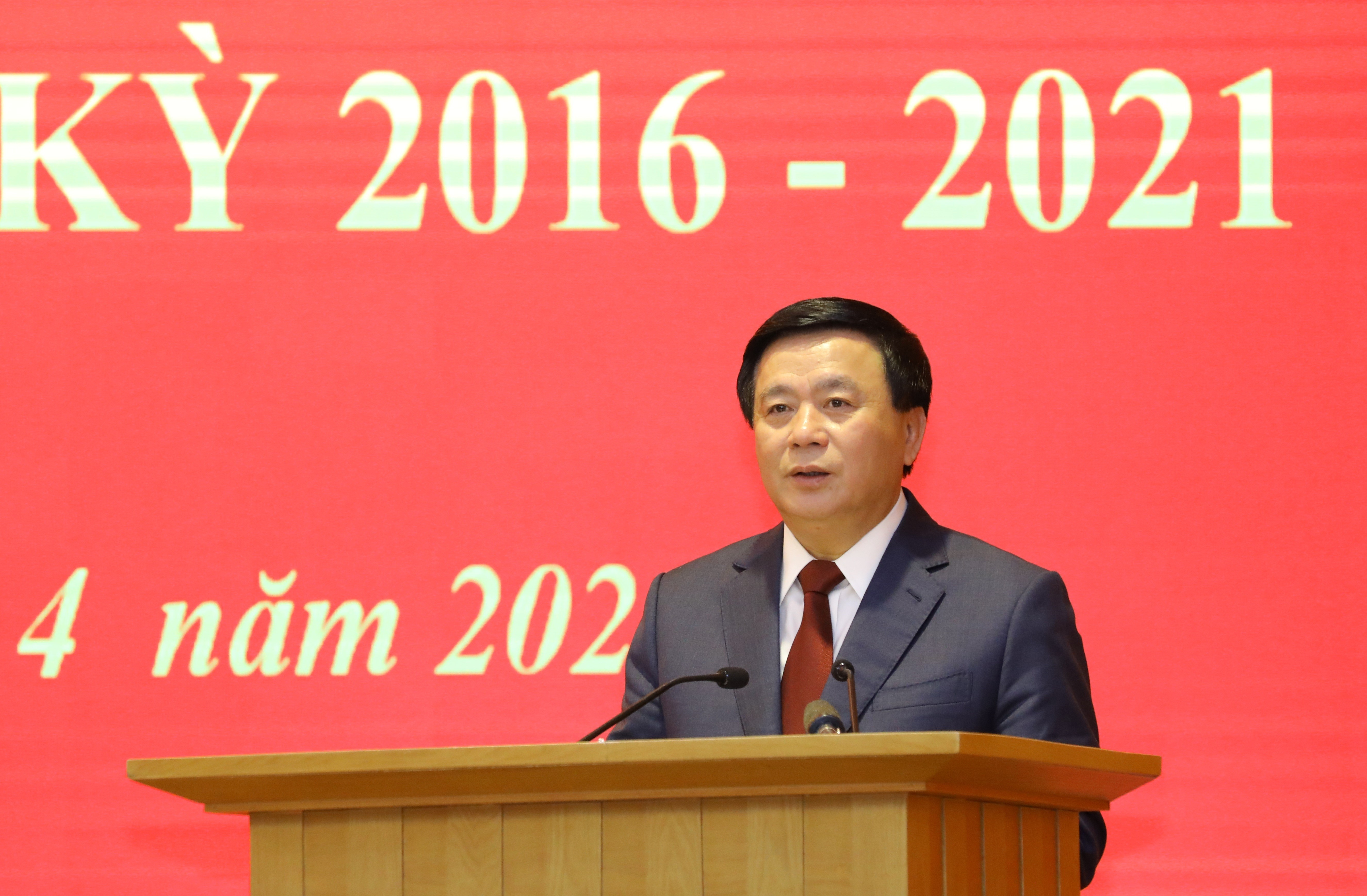 Thay mặt Bộ Chính trị, Ban Bí Thư, đồng chí Tổng Bí thư Nguyễn Phú Trọng đánh giá cao những kết quả công tác của Hội đồng Lý luận Trung ương nhiệm kỳ 2016 - 2021, chỉ rõ những kết quả quan trọng, tương đối toàn diện mà Hội đồng đạt được trong nhiệm kỳ 2016 - 2021 là rất đáng trân trọng.