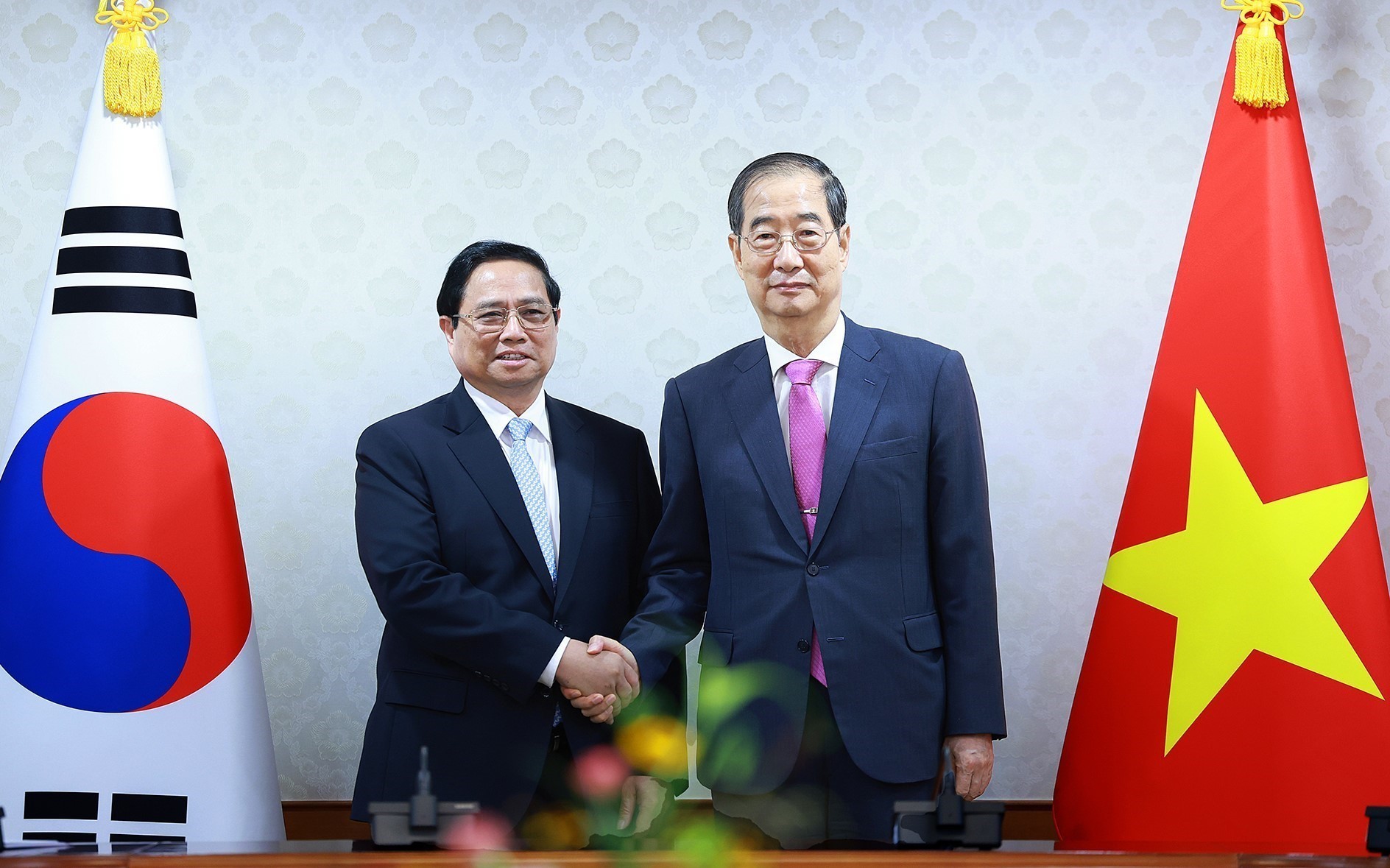 Thủ tướng Chính phủ Phạm Minh Chính nhấn mạnh 8 điểm tiến triển hơn sau khi hai nước nâng cấp quan hệ, bao gồm tin cậy chính trị, thương mại, đầu tư, du lịch, giao lưu nhân dân, hợp tác khoa học - công nghệ, lao động, hợp tác địa phương, hợp tác trong các vấn đề khu vực và quốc tế và đề nghị Thủ tướng Chính phủ Han Duck Soo quan tâm chỉ đạo 5 ưu tiên triển khai hợp tác trong thời gian tới.