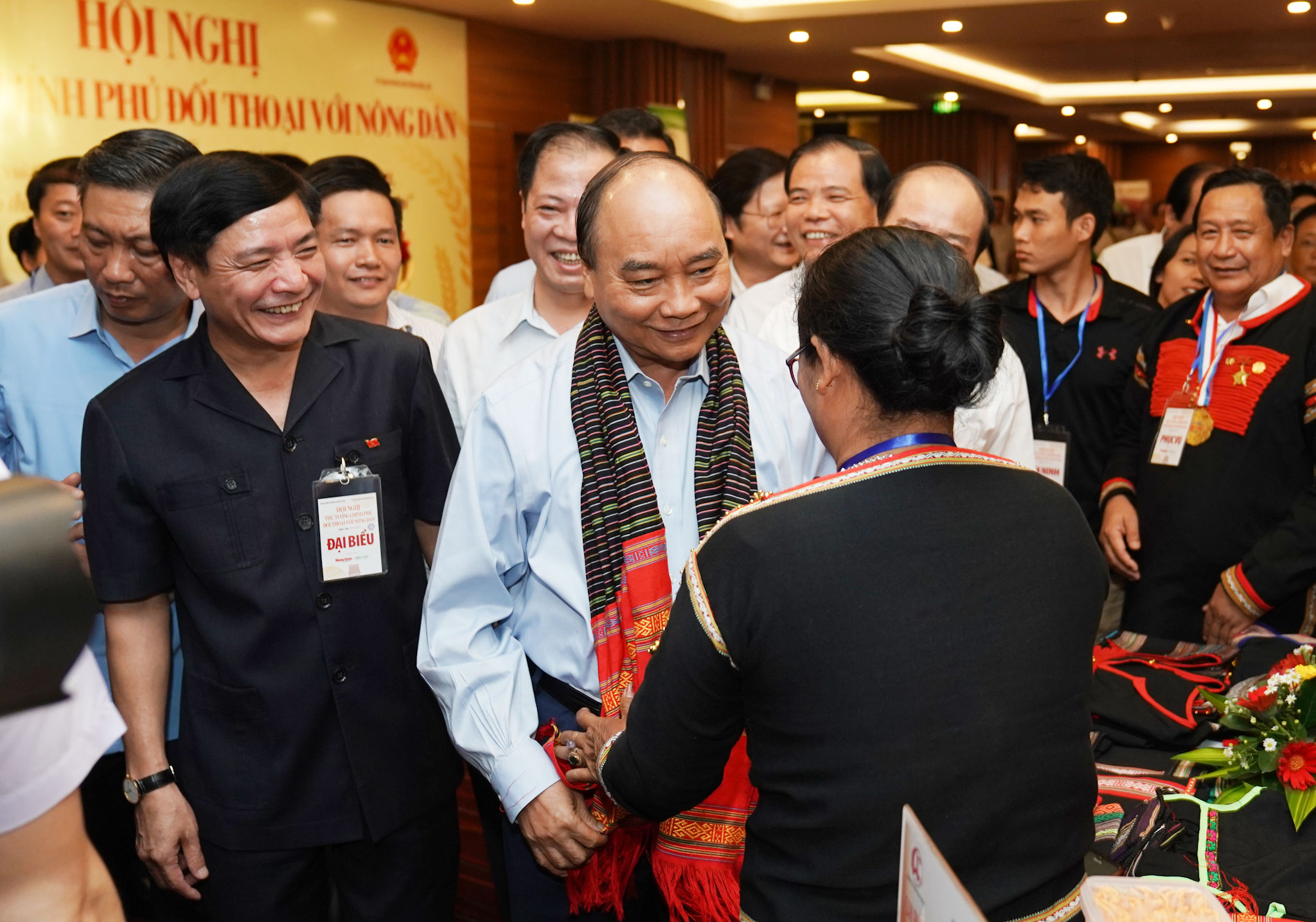Ủy viên Bộ Chính trị, Thủ tướng Chính phủ Nguyễn Xuân Phúc thăm gian hàng trưng bày nông sản sạch và hàng thủ công mỹ nghệ của đồng bào các dân tộc Tây Nguyên_Nguồn: baochinhphu.vn