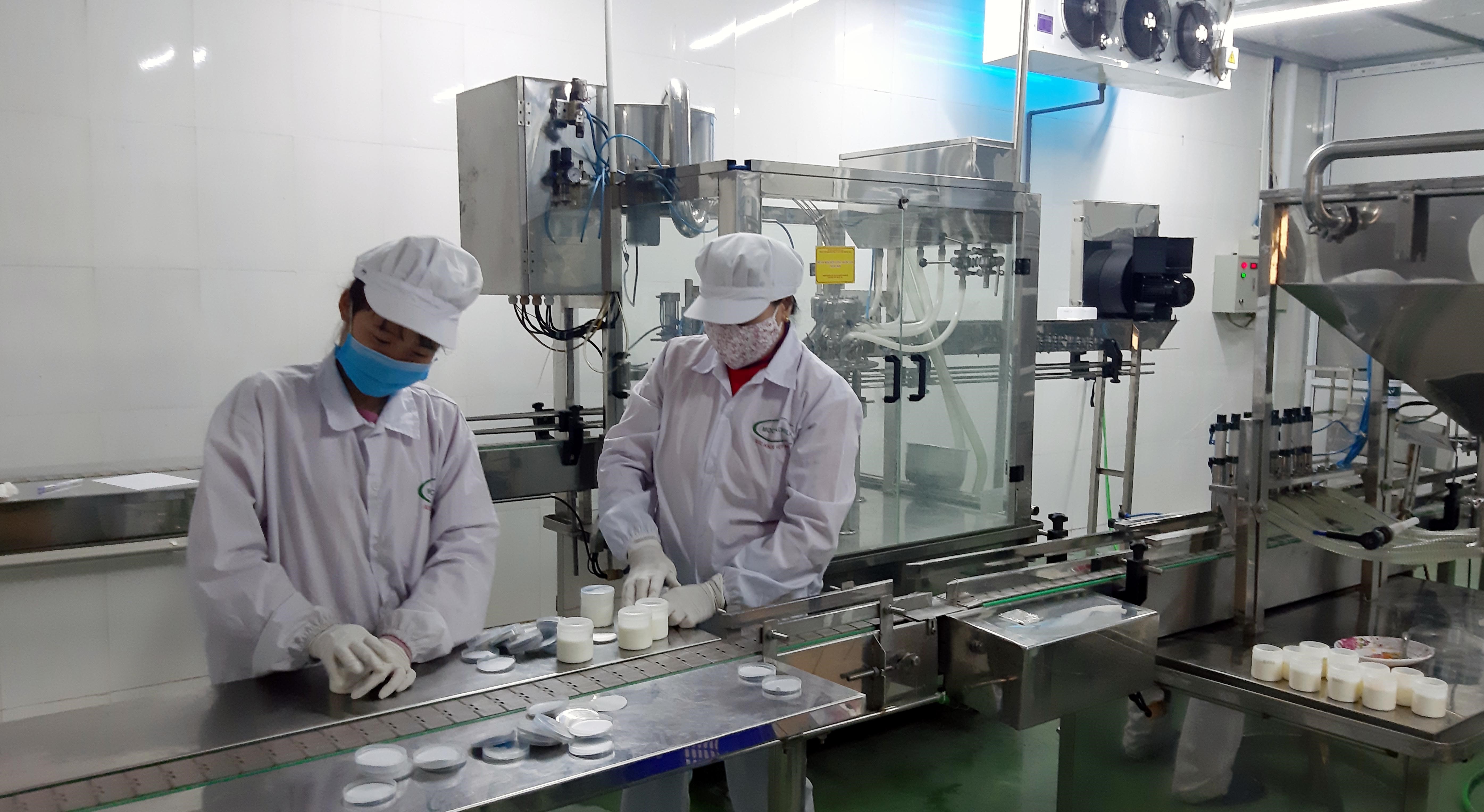 Chế biến các sản phẩm sữa từ nguồn sữa bò nuôi tại trang trại của Công ty cổ phần Bò và giống bò Mộc Bắc ở xã Mộc Bắc, thị xã Duy Tiên, tỉnh Hà Nam_Ảnh: TTXVN