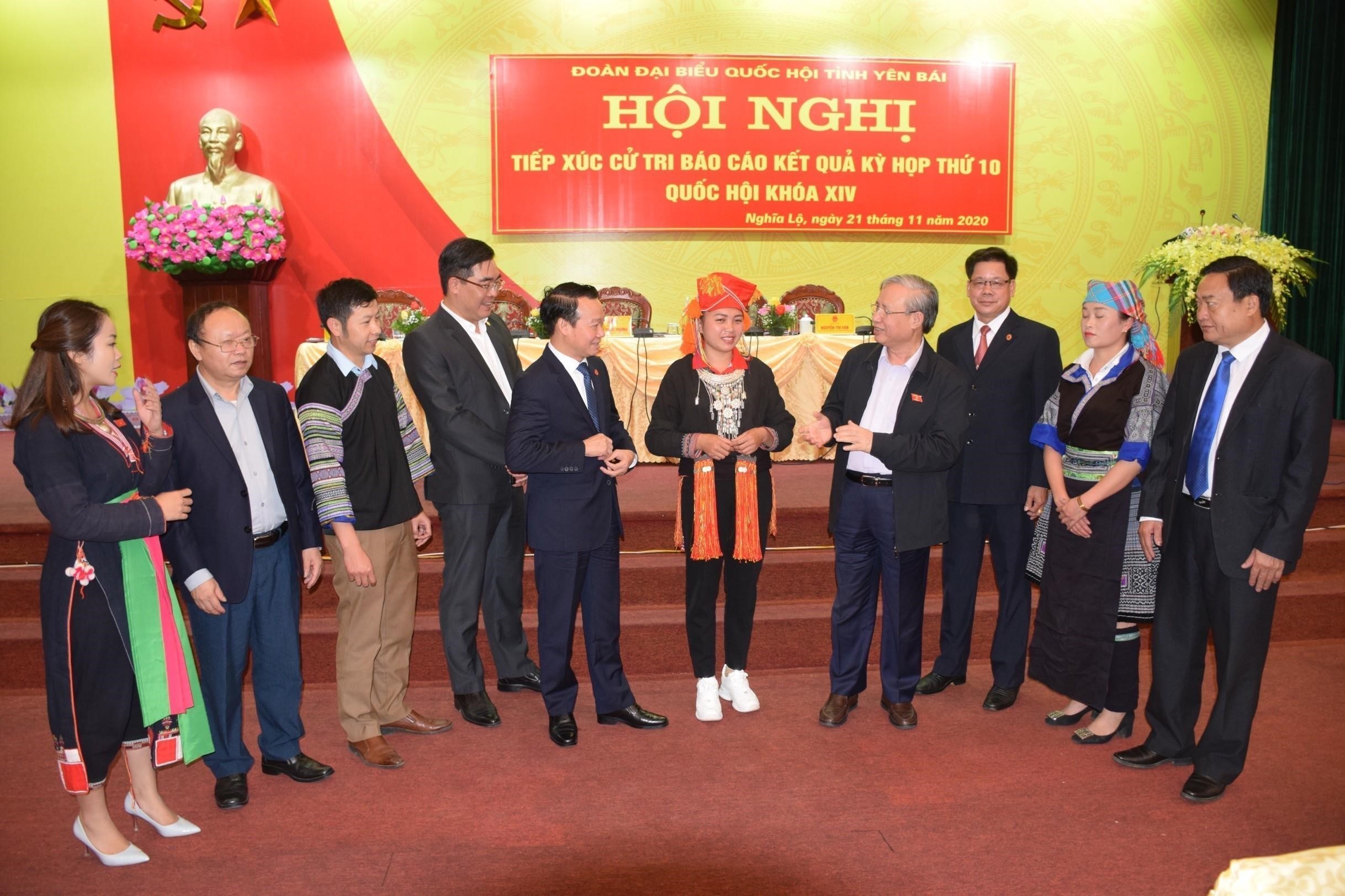 Ủy viên Bộ Chính trị, Thường trực Ban Bí thư Trần Quốc Vượng cùng các đại biểu Quốc hội trao đổi với cử tri thị xã Nghĩa Lộ, tỉnh Yên Bái _Ảnh: TTXVN