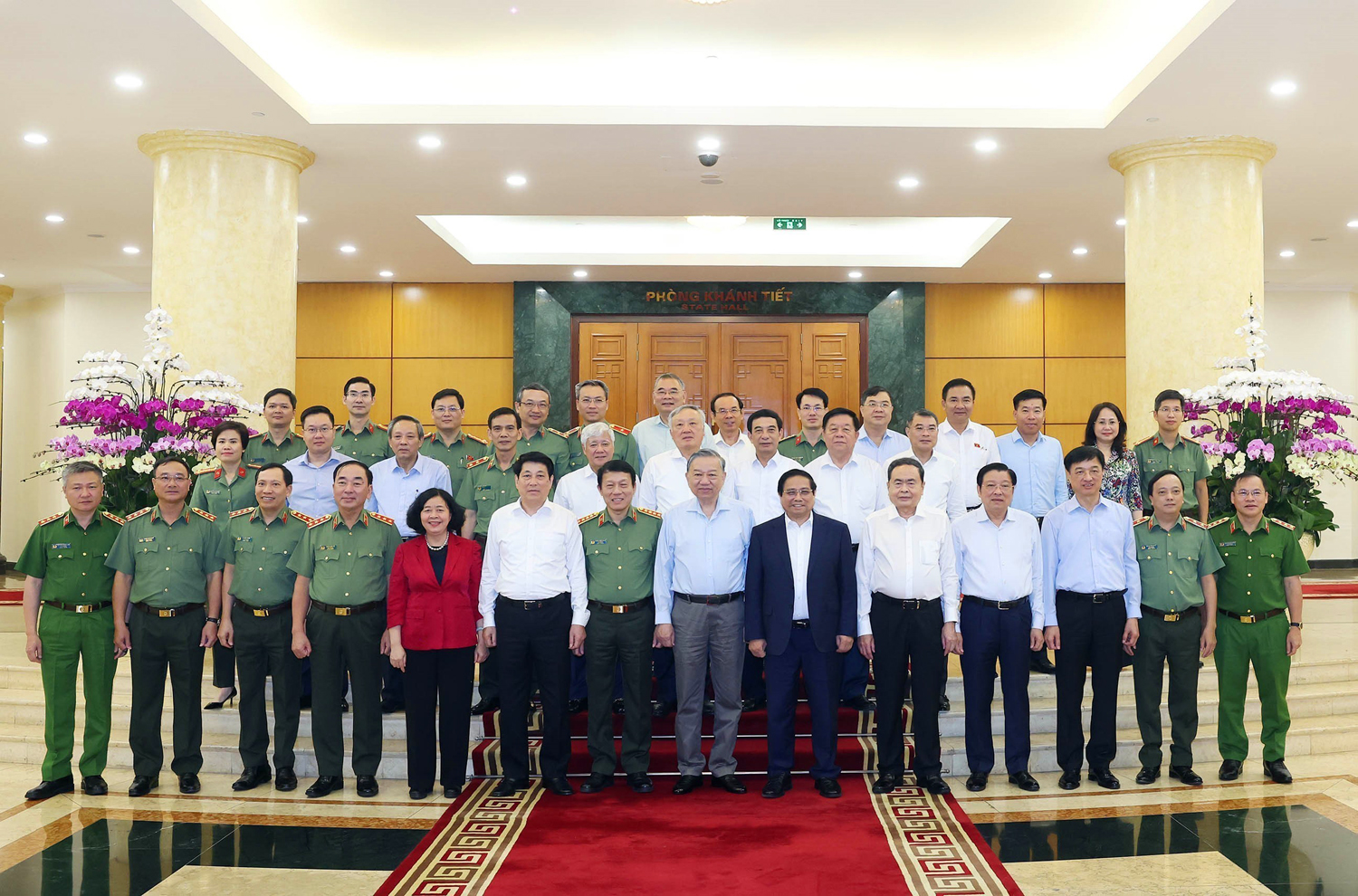 Tổng Bí thư Tô Lâm và các đồng chí lãnh đạo Đảng, Nhà nước với Ban Thường vụ Đảng ủy Công an Trung ương _Ảnh: TTXVN