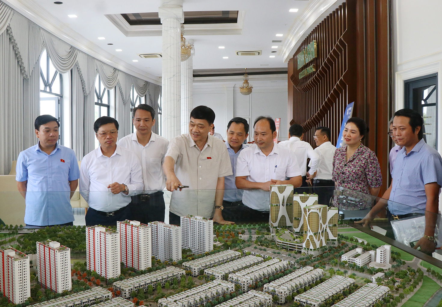 Đoàn Giám sát của Quốc hội về việc thực hiện chính sách, pháp luật về quản lý thị trường bất động sản và phát triển nhà ở xã hội từ năm 2015 đến năm 2023 đã có buổi giám sát nhằm khảo sát một số dự án bất động sản, nhà ở xã hội đang gặp khó khăn trên địa bàn tỉnh Bắc Ninh _Ảnh: TTXVN