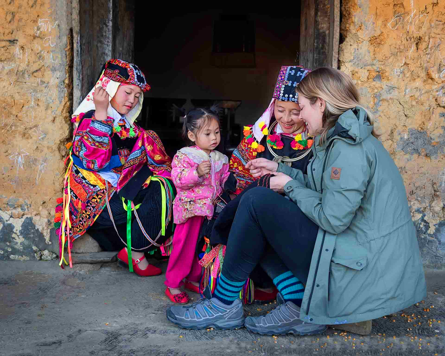 Hướng dẫn du khách thêu thổ cẩm (tác giả: Đào Văn Trà) _Nguồn: nhiepanhdoisong.vn