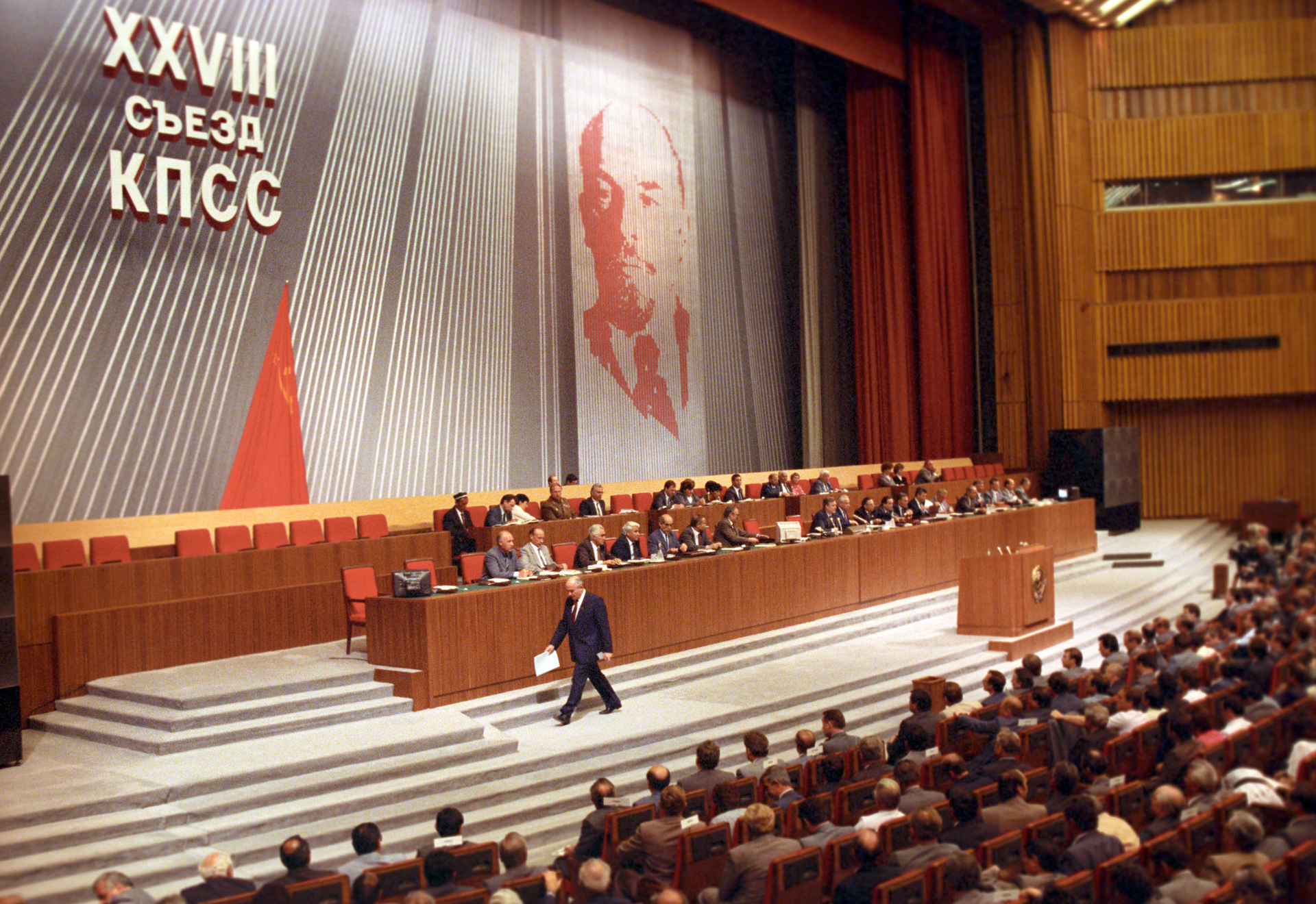 Thông qua “diễn biến hòa bình”, với chiêu bài “tự do”, “dân chủ”, “nhân quyền”, các thế lực thù địch, phản động đã từng bước xóa bỏ vai trò lãnh đạo, cầm quyền của Đảng Cộng sản Liên Xô (Trong ảnh: Đại hội lần thứ XXVIII Đảng Cộng sản Liên Xô) _Nguồn: russian.rt.com