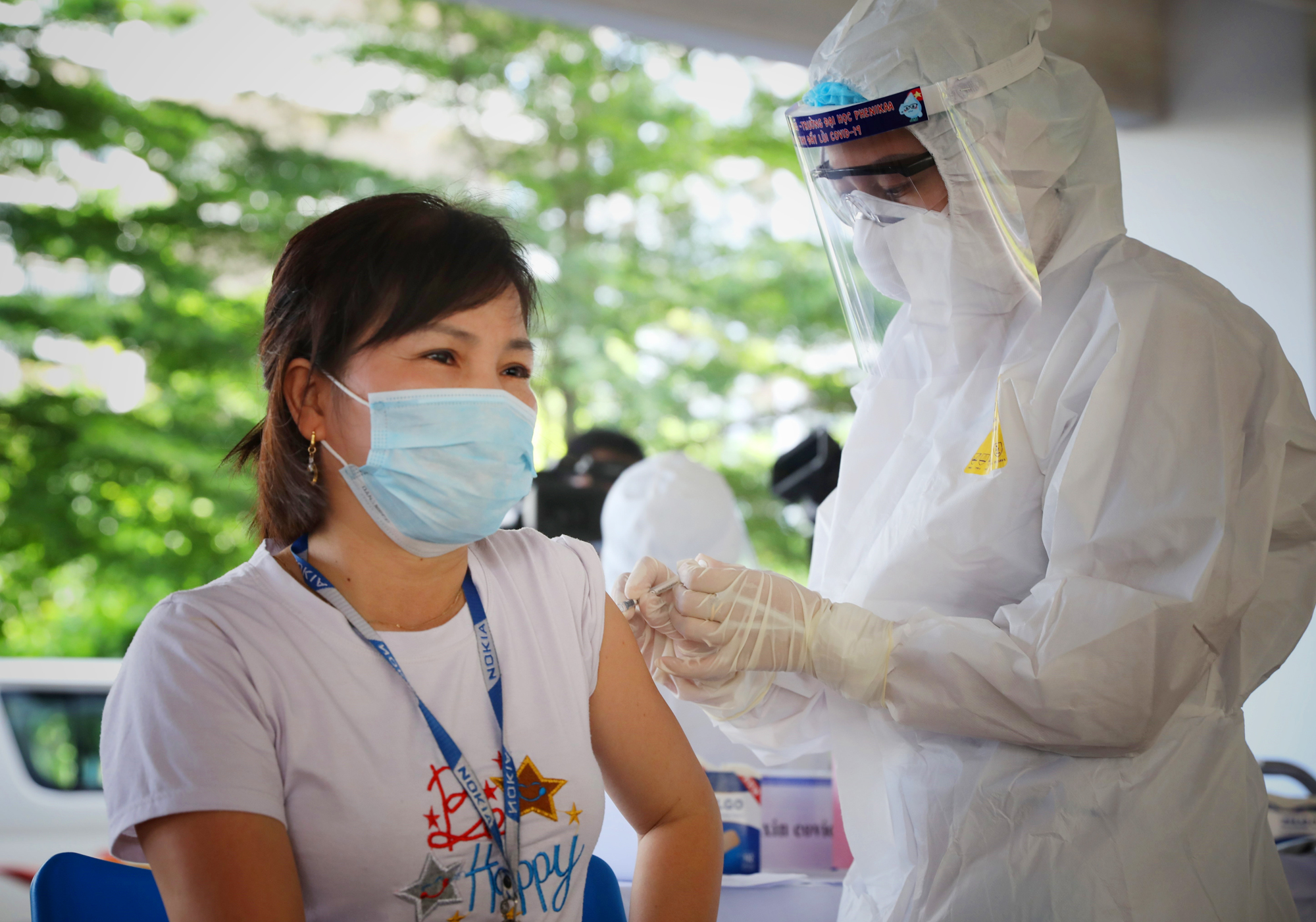 Đảng và Nhà nước ta luôn chăm lo phát triển kinh tế - xã hội, thực hiện tốt chính sách phúc lợi xã hội và an sinh xã hội, thúc đẩy nâng cao đời sống vật chất và tinh thần của nhân dân (Trong ảnh: Tiêm vaccine phòng COVID-19 cho công nhân tại Khu công nghiệp Đình Trám, huyện Việt Yên, tỉnh Bắc Giang) _ Ảnh: TTXVN