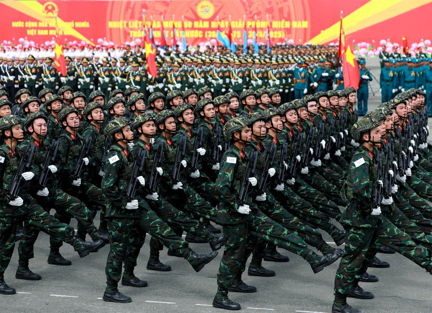 Khối chiến sĩ lục quân hợp luyện diễu binh, diễu hành chuẩn bị cho Lễ kỷ niệm 50 năm Ngày Giải phóng miền Nam, thống nhất đất nước (30-4-1975 - 30-4-2025) _Nguồn: thanhnien.vn
