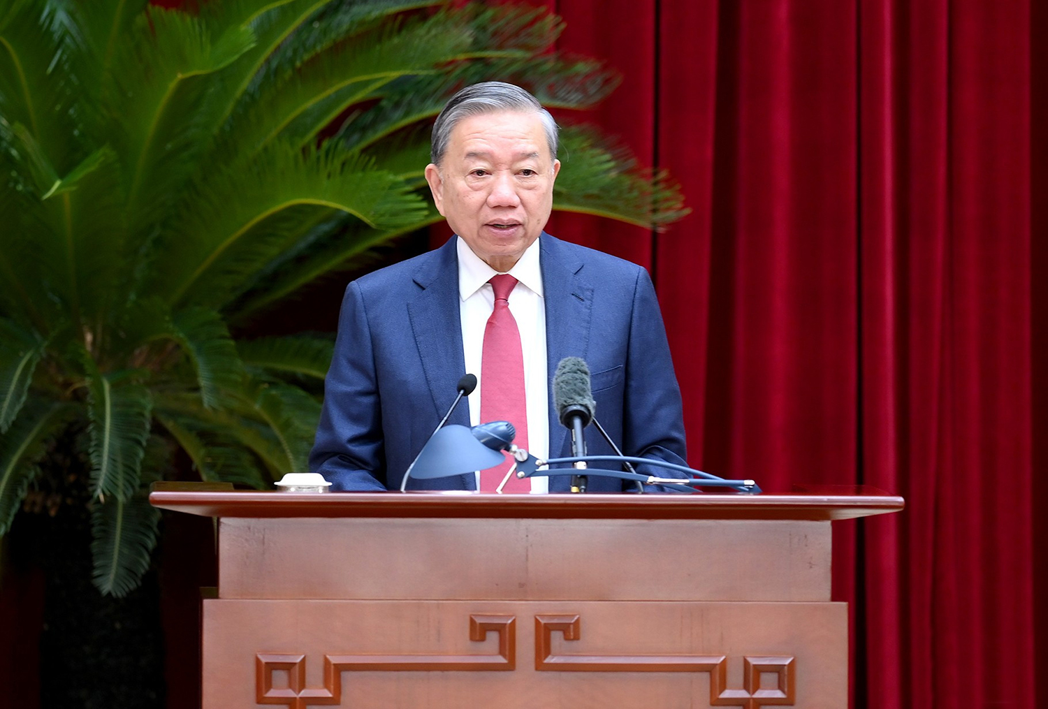 Tổng Bí thư Tô Lâm phát biểu khai mạc Hội nghị lần thứ 14 Ban Chấp hành Trung ương Đảng khóa XIII _Ảnh: TTXVN