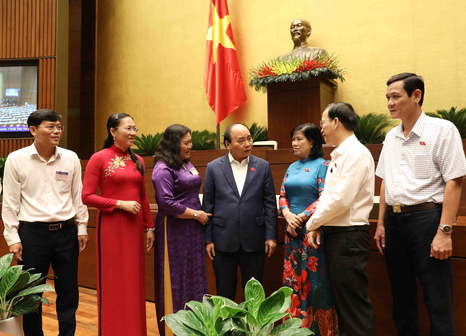 Ủy viên Bộ Chính trị, Chủ tịch nước Nguyễn Xuân Phúc với các đại biểu tham dự Phiên chất vấn và trả lời chất vấn về lĩnh vực tài chính tại Kỳ họp thứ ba, Quốc hội khóa XV _Ảnh: TTXVN