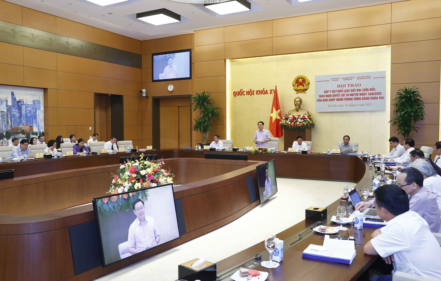 Ủy viên Bộ Chính trị, Chủ tịch Quốc hội Vương Đình Huệ chủ trì Hội thảo góp ý dự thảo Luật Đất đai (sửa đổi) theo Nghị quyết số 18-NQ/TW, ngày 16-6-2022, của Ban Chấp hành Trung ương Đảng khoá XIII do Hội đồng khoa học của Ủy ban Thường vụ Quốc hội, Viện Nghiên cứu Lập pháp, Ủy ban Kinh tế phối hợp với Bộ Tài nguyên và Môi trường và Hội Luật gia Việt Nam tổ chức _Ảnh: TTXVN