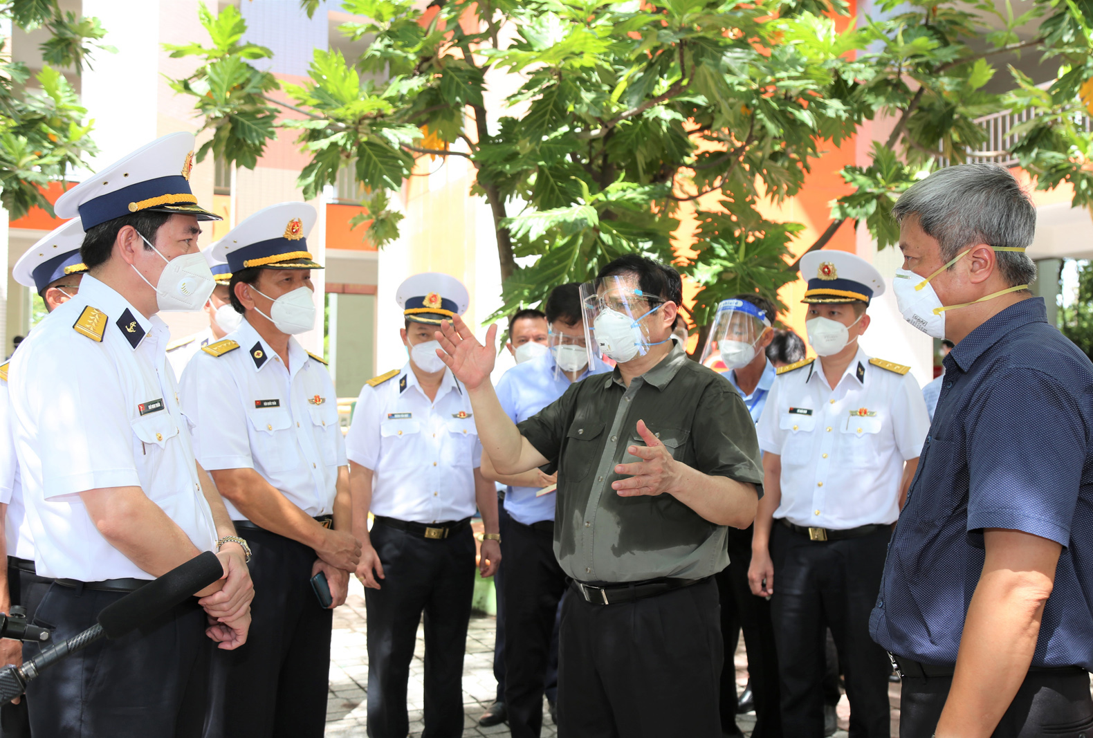 Ủy viên Bộ Chính trị, Thủ tướng Chính phủ Phạm Minh Chính kiểm tra công tác phòng, chống dịch COVID-19 tại thành phố Thủ Đức, Thành phố Hồ Chí Minh _Ảnh: TTXVN