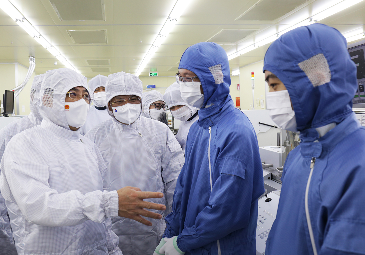 Ủy viên Trung ương Đảng, Bí thư Tỉnh ủy Bắc Giang Dương Văn Thái thăm xưởng sản xuất của Công ty TNHH Hana Micron Vina sản xuất trong điều kiện thích ứng linh hoạt, kiểm soát hiệu quả dịch bệnh COVID-19 _Nguồn: baobacgiang.vn