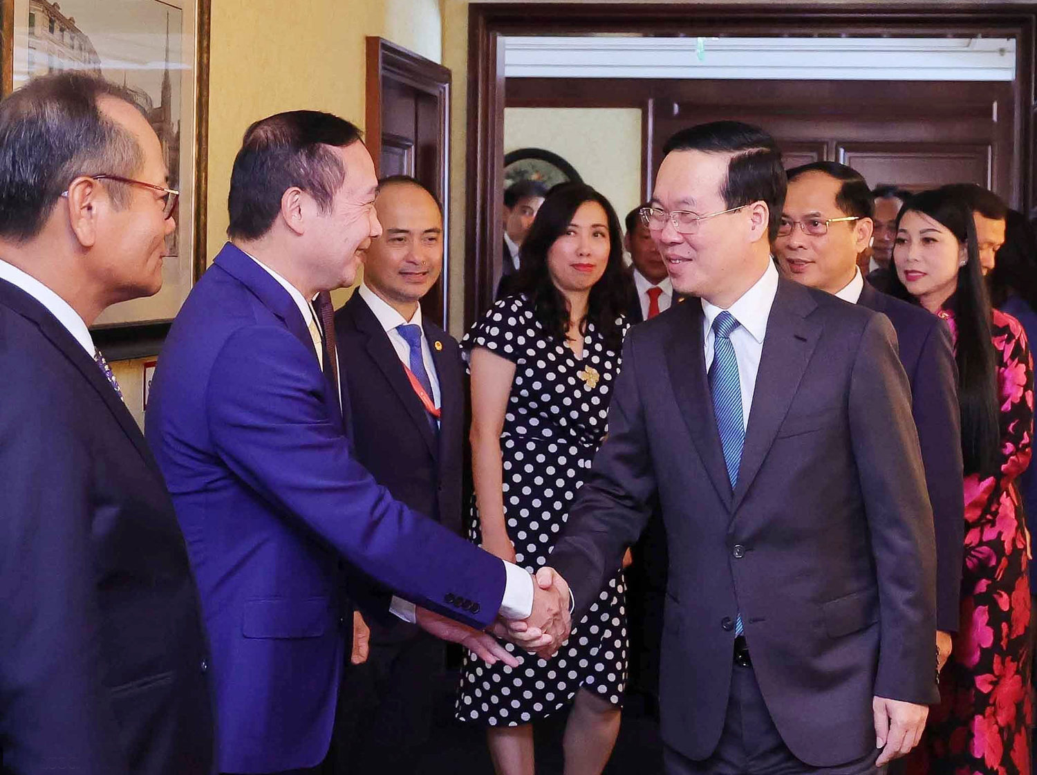 Ủy viên Bộ Chính trị, Chủ tịch nước Võ Văn Thưởng gặp gỡ các đại sứ Việt Nam tại khu vực châu Âu _Ảnh: TTXVN