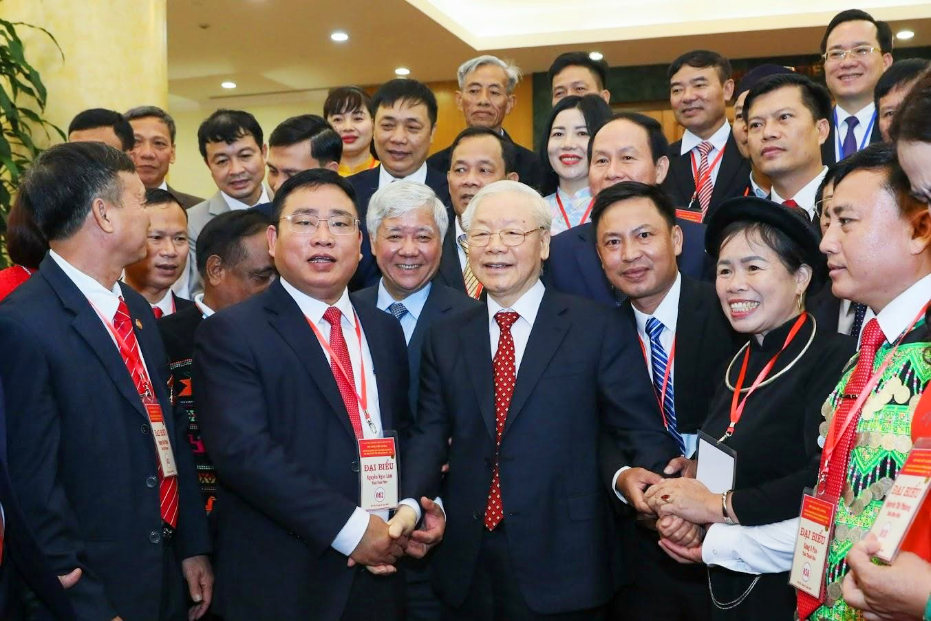 Tổng Bí thư Nguyễn Phú Trọng gặp mặt các đại diện tiêu biểu về dự Hội nghị biểu dương chủ tịch Mặt trận Tổ quốc cấp xã và trưởng ban công tác Mặt trận tiêu biểu toàn quốc _Ảnh: TTXVN