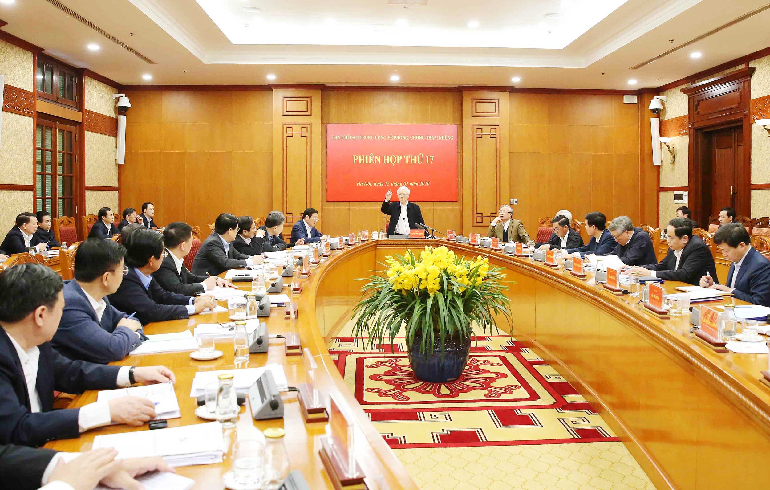 Tổng Bí thư, Chủ tịch nước Nguyễn Phú Trọng phát biểu tại Phiên họp thứ 17 của  Ban Chỉ đạo Trung ương về phòng, chống tham nhũng_Ảnh: TTXVN
