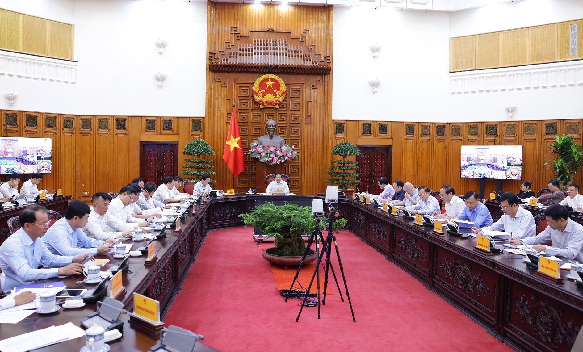 Cuộc họp được tổ chức trực tuyến giữa điểm cầu trụ sở Chính phủ với trụ sở ủy ban nhân dân các tỉnh có đường dây 500 kV mạch 3 đi qua.