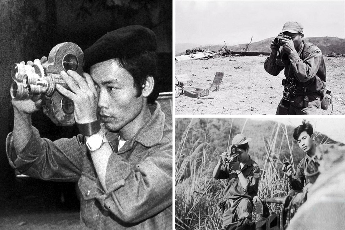Những thước phim chiến trường được các nhà báo ghi lại chân thực, sinh động phản ánh sự khốc liệt của chiến tranh. Trong ảnh: Liệt sĩ - nhà báo Lương Nghĩa Dũng, phóng viên chiến trường của Thông tấn xã Việt Nam đã hy sinh trên chiến trường Quảng Trị trong kháng chiến chống đế quốc Mỹ, cứu nước_Ảnh: Tư liệu TTXVN; Phóng viên tác nghiệp tại mặt trận miền Trung_Ảnh: Tư liệu