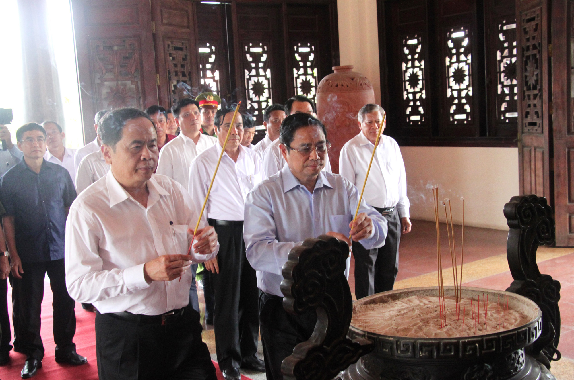 Ủy viên Bộ Chính trị, Thủ tướng Chính phủ Phạm Minh Chính và các đồng chí lãnh đạo Đảng, Nhà nước dâng hương tưởng niệm Chủ tịch Hội đồng Bộ trưởng Phạm Hùng tại xã Long Phước, huyện Long Hồ, tỉnh Vĩnh Long_Ảnh: TTXVN